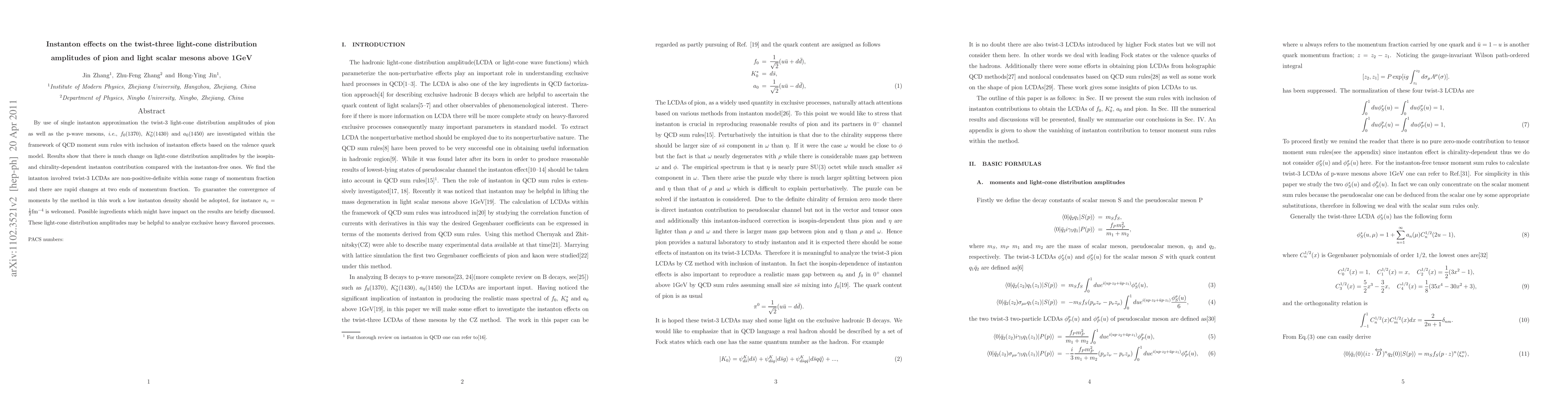 This paper investigates the twist-3 light-cone distribution amplitudes of pion and p-wave mesons using the single instanton approximation within QCD sum rules, revealing significant changes due to instanton effects. The results indicate non-positive-definite amplitudes and rapid changes at momentum fraction extremes, suggesting a low instanton density for convergence.