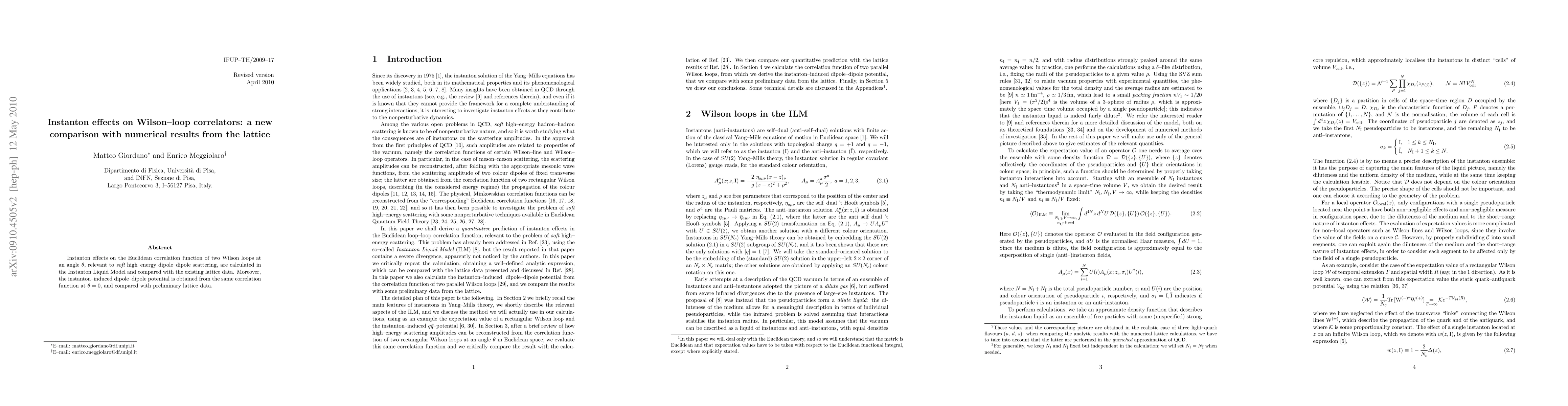 Instanton effects on the Euclidean correlation function of two Wilson loops at an angle $\theta$, relevant to soft high-energy dipole-dipole scattering, are calculated in the Instanton Liquid Model and compared with the existing lattice data. Moreover, the instanton-induced dipole-dipole potential is obtained from the same correlation function at $\theta=0$, and compared with preliminary lattice data.