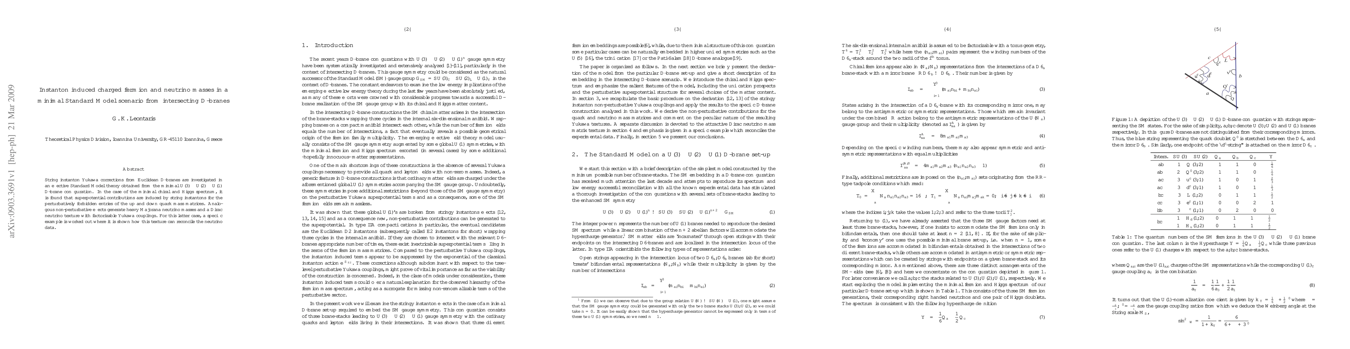 This paper explores how string instantons from intersecting D-branes can induce charged fermion and neutrino masses in a minimal Standard Model scenario. It finds that these instantons contribute to up and down quark masses and generate Majorana neutrino masses with a Dirac texture, potentially explaining observed neutrino data.