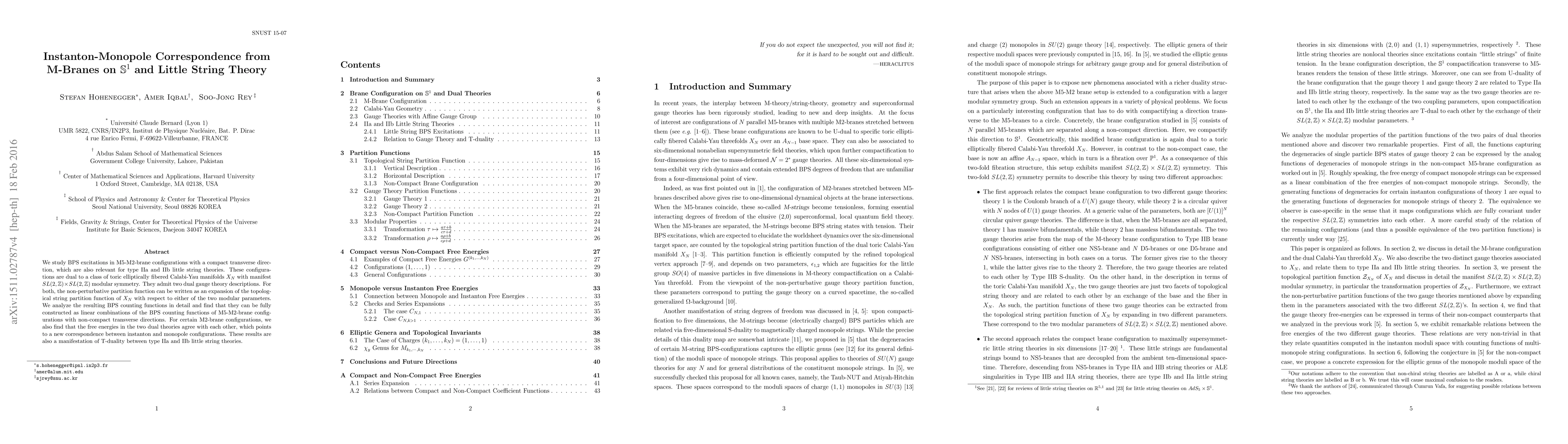 We study BPS excitations in M5-M2-brane configurations with a compact transverse direction, which are also relevant for type IIa and IIb little string theories. These configurations are dual to a class of toric elliptically fibered Calabi-Yau manifolds $X_N$ with manifest $SL(2, \mathbb{Z}) \times SL(2,\mathbb{Z})$ modular symmetry. They admit two dual gauge theory descriptions. For both, the non-perturbative partition function can be written as an expansion of the topological string partition function of $X_N$ with respect to either of the two modular parameters. We analyze the resulting BPS counting functions in detail and find that they can be fully constructed as linear combinations of the BPS counting functions of M5-M2-brane configurations with non-compact transverse directions. For certain M2-brane configurations, we also find that the free energies in the two dual theories agree with each other, which points to a new correspondence between instanton and monopole configurations. These results are also a manifestation of T-duality between type IIa and IIb little string theories.