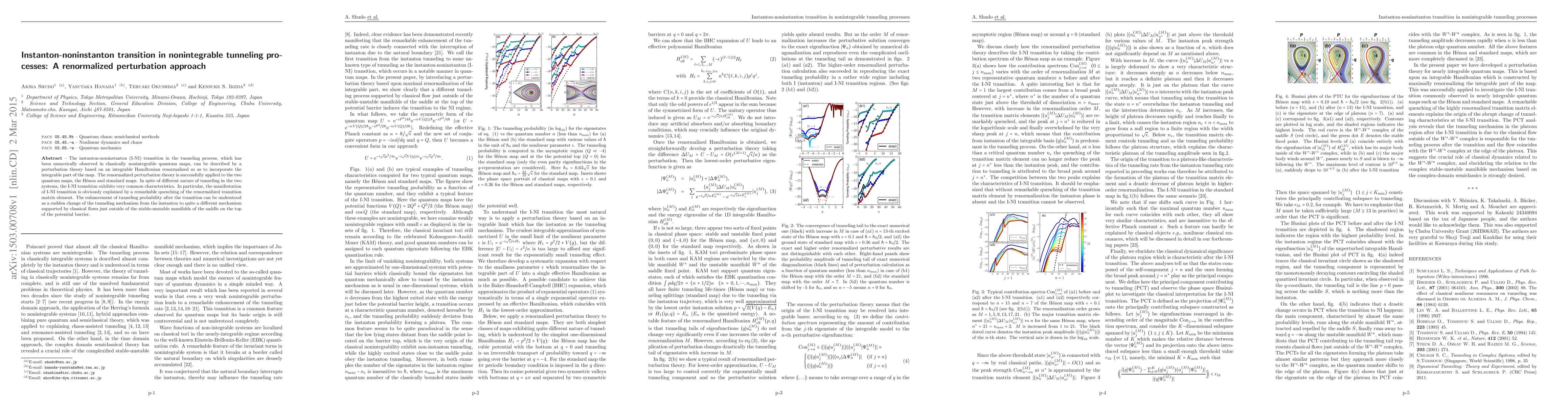 This paper explores the instanton-noninstanton transition in tunneling processes using a renormalized perturbation theory applied to the Hénon and standard maps. The study reveals common characteristics of the transition, primarily explained by the quenching of the renormalized transition matrix element, leading to a sudden change in tunneling mechanism.