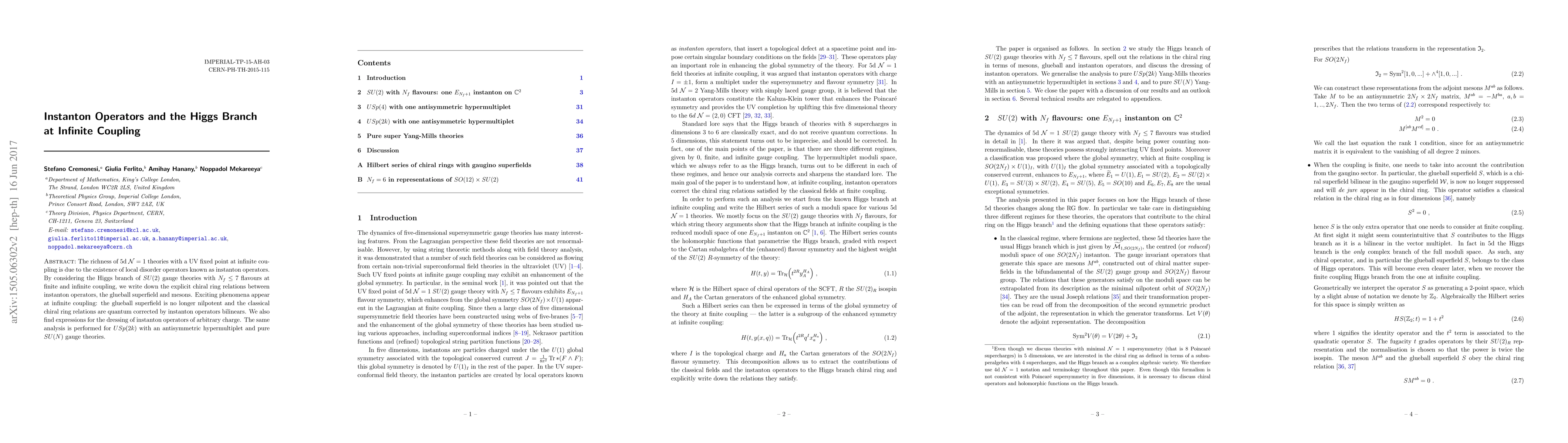 The richness of 5d $\mathcal{N}=1$ theories with a UV fixed point at infinite coupling is due to the existence of local disorder operators known as instanton operators. By considering the Higgs branch of $SU(2)$ gauge theories with $N_f \leq 7$ flavours at finite and infinite coupling, we write down the explicit chiral ring relations between instanton operators, the glueball superfield and mesons. Exciting phenomena appear at infinite coupling: the glueball superfield is no longer nilpotent and the classical chiral ring relations are quantum corrected by instanton operators bilinears. We also find expressions for the dressing of instanton operators of arbitrary charge. The same analysis is performed for $USp(2k)$ with an antisymmetric hypermultiplet and pure $SU(N)$ gauge theories.