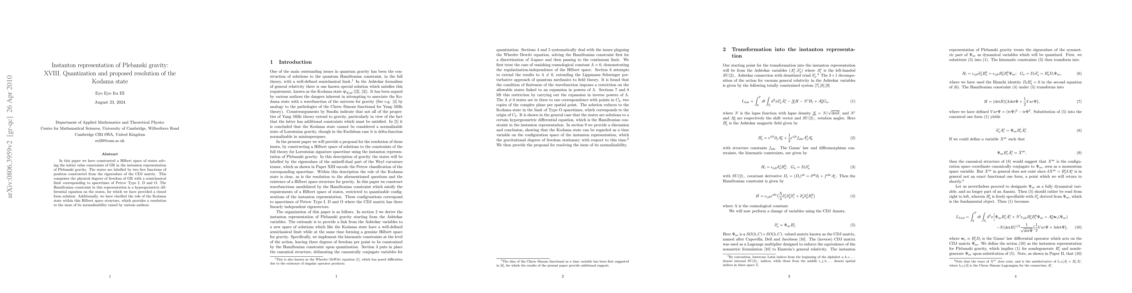 In this paper we have constructed a Hilbert space of states solving the initial value constraints of GR in the instanton representation of Plebanski gravity. The states are labelled by two free functions of position constructed from the eigenvalues of the CDJ matrix. This comprises the physical degrees of freedom of GR with a semiclassical limit corresponding to spacetimes of Petrov Type I, D and O. The Hamiltonian constraint in this representation is a hypergeometric differential equation on the states, for which we have provided a closed form solution. Additionally, we have clarified the role of the Kodama state within this Hilbert space structure, which provides a resolution to the issue of its normalizability raised by various authors.