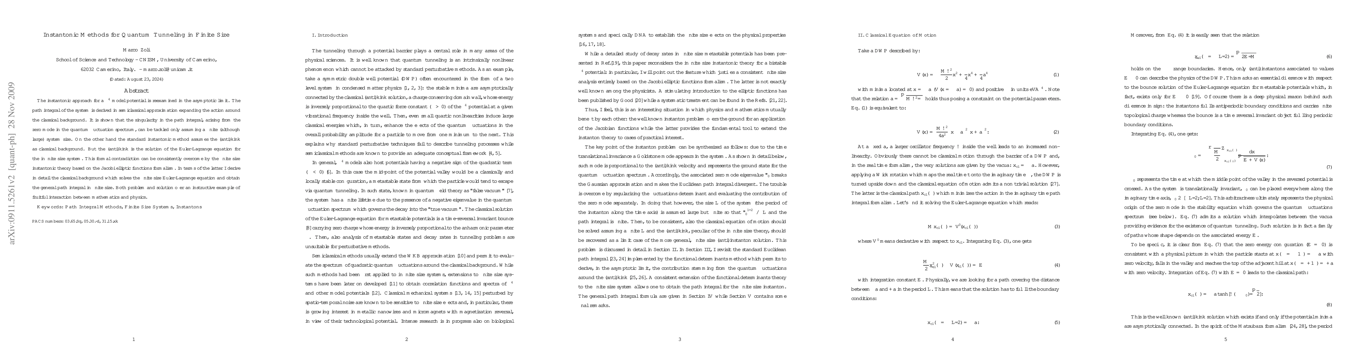 The instantonic approach for a $\phi^4$ model potential is reexamined in the asymptotic limit. The path integral of the system is derived in semiclassical approximation expanding the action around the classical background. It is shown that the singularity in the path integral, arising from the zero mode in the quantum fluctuation spectrum, can be tackled only assuming a {\it finite} (although large) system size. On the other hand the standard instantonic method assumes the (anti)kink as classical background. But the (anti)kink is the solution of the Euler-Lagrange equation for the {\it infinite} size system. This formal contradiction can be consistently overcome by the finite size instantonic theory based on the Jacobi elliptic functions formalism. In terms of the latter I derive in detail the classical background which solves the finite size Euler-Lagrange equation and obtain the general path integral in finite size. Both problem and solution offer an instructive example of fruitful interaction between mathematics and physics. {\bf Keywords: Path Integral Methods, Finite Size Systems, Instantons}