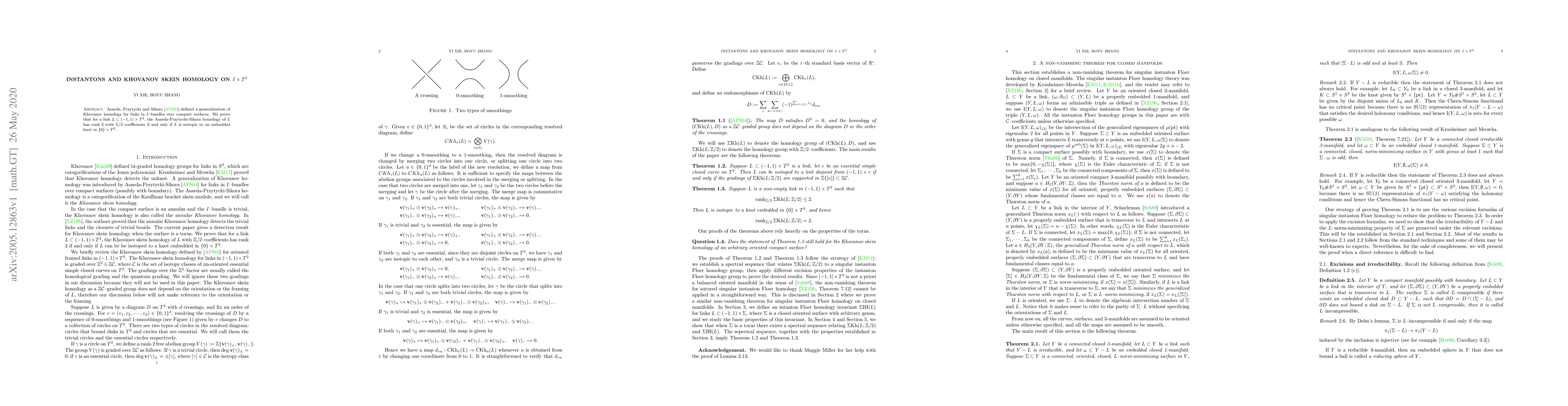 This paper proves that the Asaeda-Przytycki-Sikora homology of a link in a specific $I$-bundle over $T^2$ has rank $2$ if and only if the link is isotopic to a standard embedded knot in $T^2$. This result connects instanton theory and Khovanov homology in a novel way.