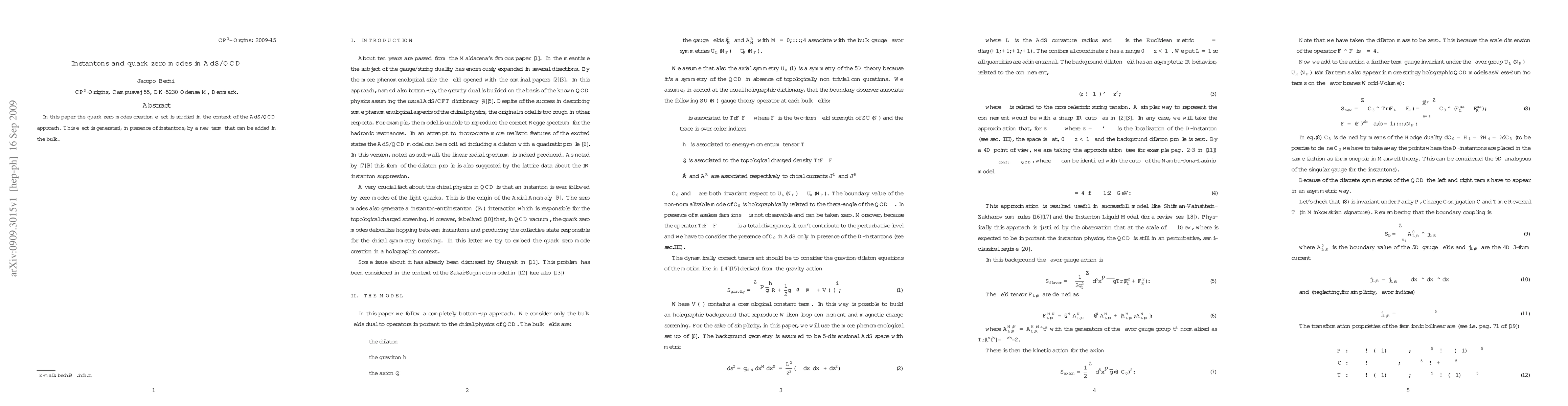 Researchers investigated how instantons in AdS/QCD influence quark zero modes, finding a new contribution that can be added to the bulk.