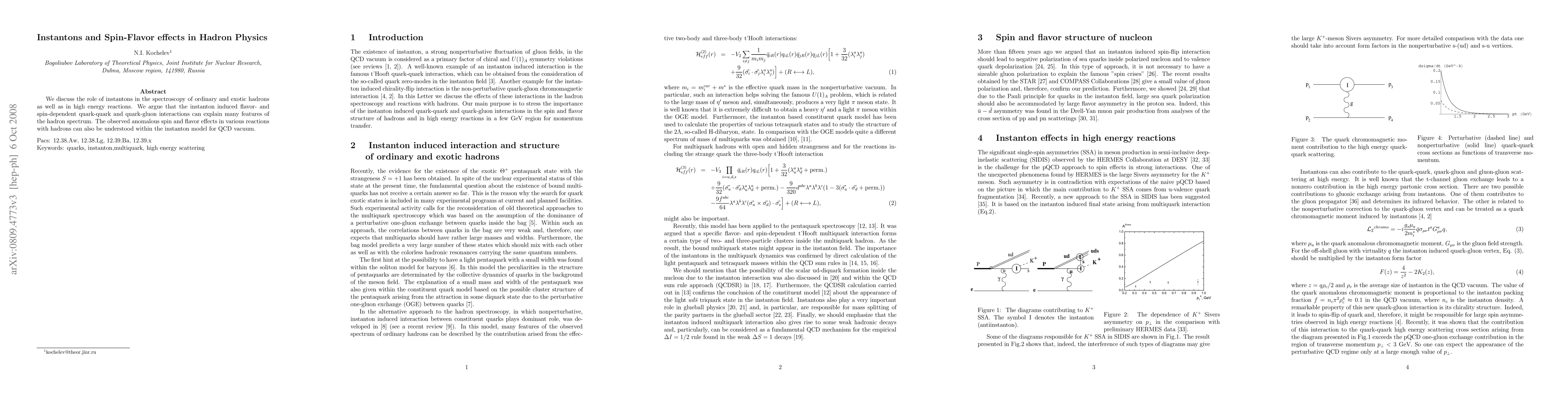 This paper explores how instantons influence the spectroscopy of ordinary and exotic hadrons, proposing that instanton-induced flavor- and spin-dependent interactions explain features of the hadron spectrum and observed spin and flavor effects in high-energy reactions. The study supports the instanton model for the QCD vacuum.