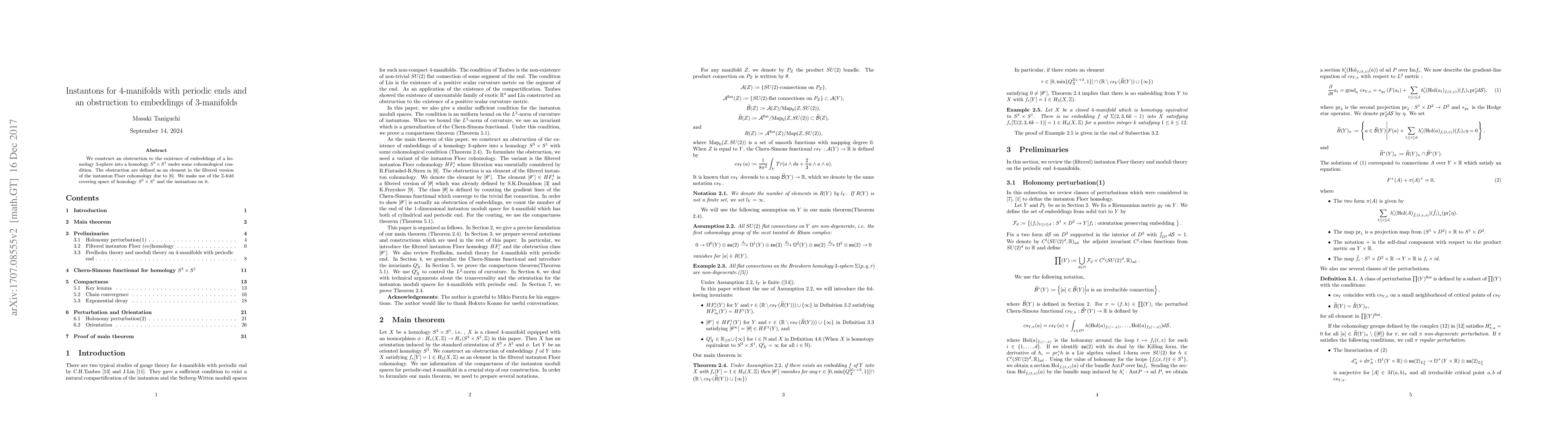 This paper constructs an obstruction for embedding a homology 3-sphere into a homology $S^3\times S^1$ under specific cohomological conditions, using elements from the filtered instanton Floer cohomology of $\mathbb{Z}$-fold covering spaces of $S^3\times S^1$. The obstruction relies on instanton theory for 4-manifolds with periodic ends.