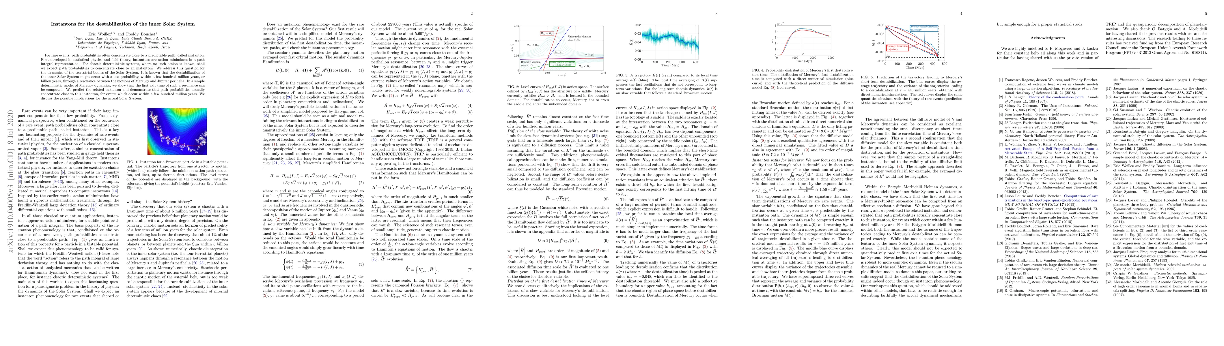 Researchers found that for a rare event in the Solar System involving Mercury and Jupiter's orbits, path probabilities concentrate near an instanton, a concept from statistical physics, suggesting the event could occur within a few hundred million years.