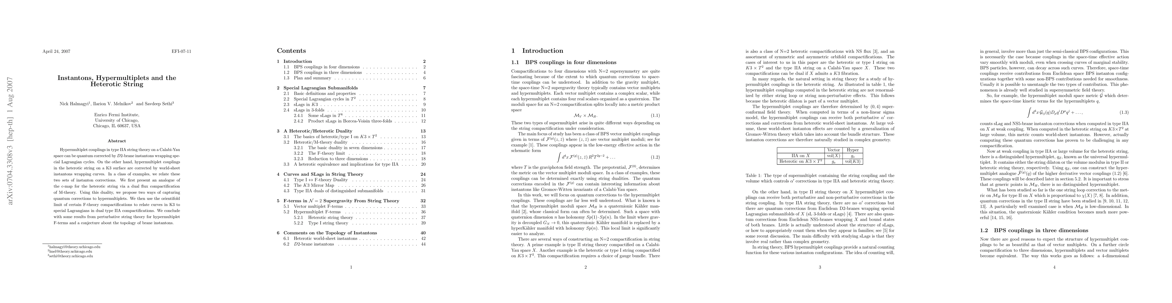 Hypermultiplet couplings in type IIA string theory on a Calabi-Yau space can be quantum corrected by D2-brane instantons wrapping special Lagrangian cycles. On the other hand, hypermultiplet couplings in the heterotic string on a K3 surface are corrected by world-sheet instantons wrapping curves. In a class of examples, we relate these two sets of instanton corrections. We first present an analogue of the c-map for the heterotic string via a dual flux compactification of M-theory. Using this duality, we propose two ways of capturing quantum corrections to hypermultiplets. We then use the orientifold limit of certain F-theory compactifications to relate curves in K3 to special Lagrangians in dual type IIA compactifications. We conclude with some results from perturbative string theory for hypermultiplet F-terms and a conjecture about the topology of brane instantons.