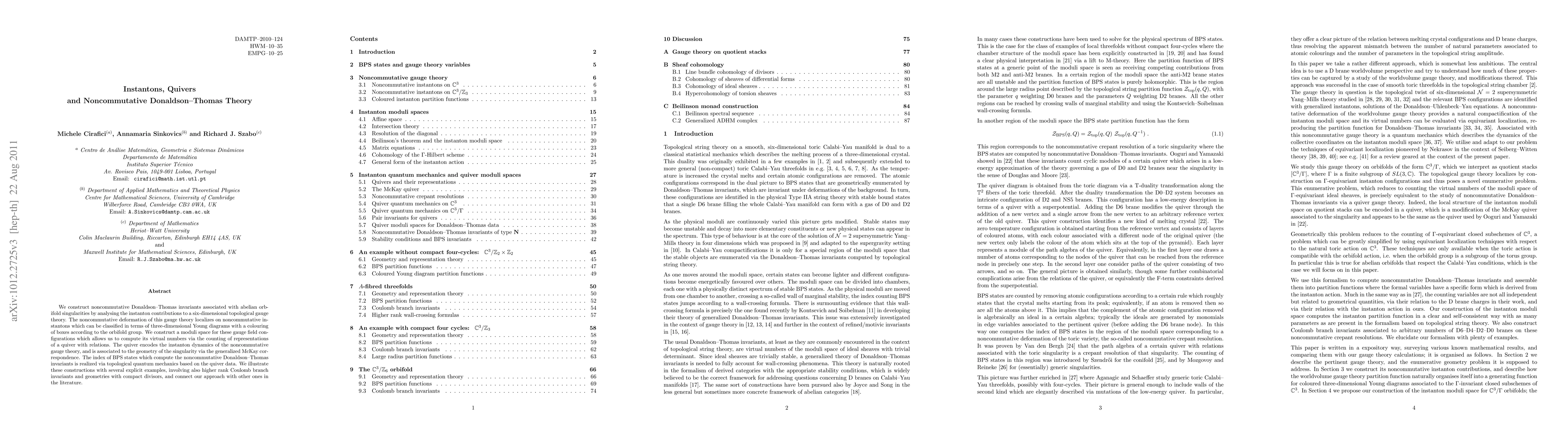 This paper constructs noncommutative Donaldson-Thomas invariants for abelian orbifold singularities by analyzing instanton contributions in a six-dimensional topological gauge theory. It realizes these invariants via a quiver with relations, linking the moduli space of noncommutative instantons to the singularity's geometry through the generalized McKay correspondence.