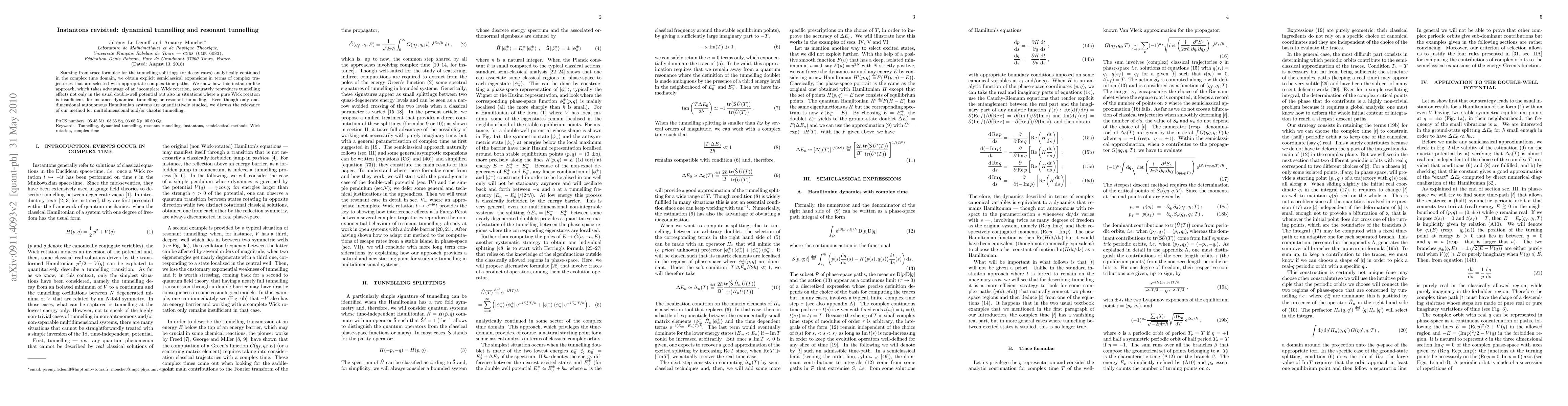 This paper develops a semiclassical expansion method using complex trajectories to accurately describe tunnelling effects in one-dimensional Hamiltonian systems, including dynamical and resonant tunnelling, and discusses its potential application to multidimensional and chaotic systems. The method leverages an incomplete Wick rotation to extend the applicability beyond traditional double-well potential scenarios.