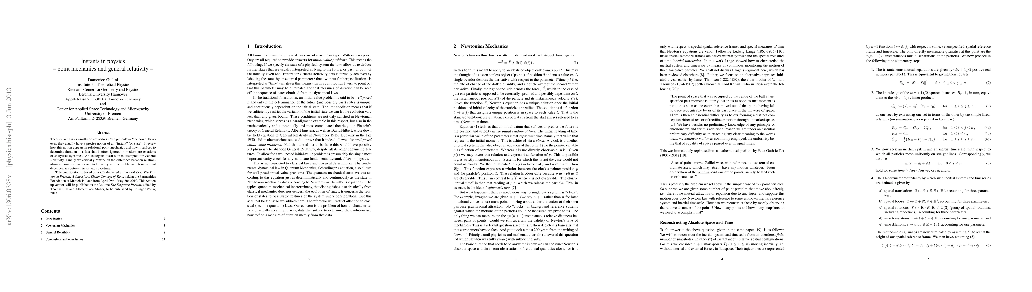 Theories in physics usually do not address ``the present''or ``the now''. However, they usually have a precise notion of an ``instant'' (or state). I review how this notion appears in relational point mechanics and how it suffices to determine durations - a fact that is often ignored in modern presentations of analytical dynamics. An analogous discussion is attempted for General Relativity. Finally I critically remark on the difference between relationalism in point mechanics and field theory and the problematic foundational dependencies between fields and spacetime.
