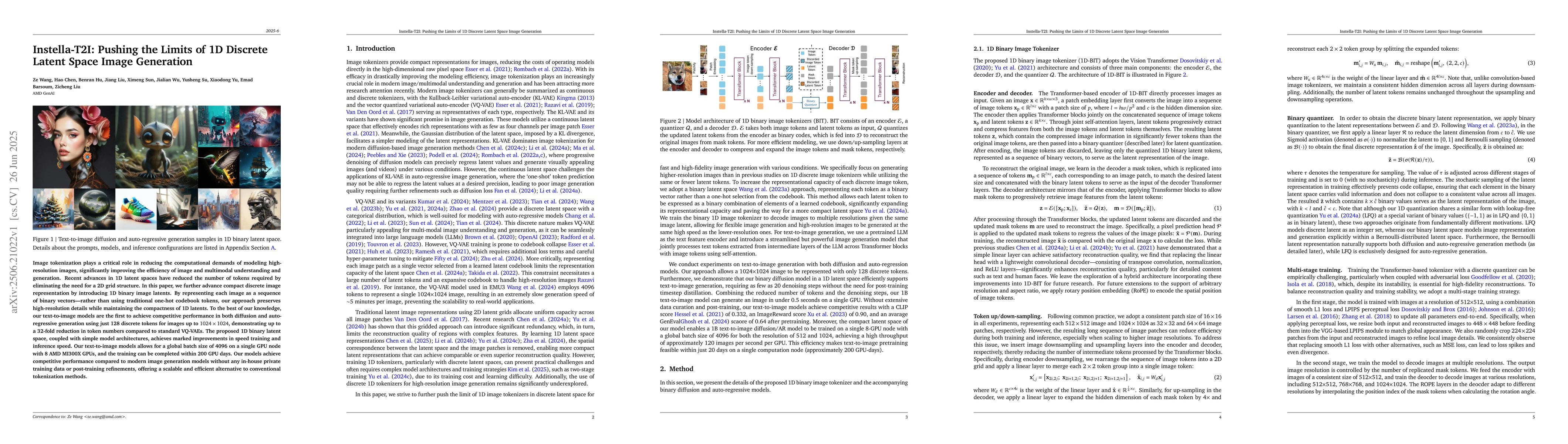 Image tokenization plays a critical role in reducing the computational demands of modeling high-resolution images, significantly improving the efficiency of image and multimodal understanding and generation. Recent advances in 1D latent spaces have reduced the number of tokens required by eliminating the need for a 2D grid structure. In this paper, we further advance compact discrete image representation by introducing 1D binary image latents. By representing each image as a sequence of binary vectors, rather than using traditional one-hot codebook tokens, our approach preserves high-resolution details while maintaining the compactness of 1D latents. To the best of our knowledge, our text-to-image models are the first to achieve competitive performance in both diffusion and auto-regressive generation using just 128 discrete tokens for images up to 1024x1024, demonstrating up to a 32-fold reduction in token numbers compared to standard VQ-VAEs. The proposed 1D binary latent space, coupled with simple model architectures, achieves marked improvements in speed training and inference speed. Our text-to-image models allow for a global batch size of 4096 on a single GPU node with 8 AMD MI300X GPUs, and the training can be completed within 200 GPU days. Our models achieve competitive performance compared to modern image generation models without any in-house private training data or post-training refinements, offering a scalable and efficient alternative to conventional tokenization methods.