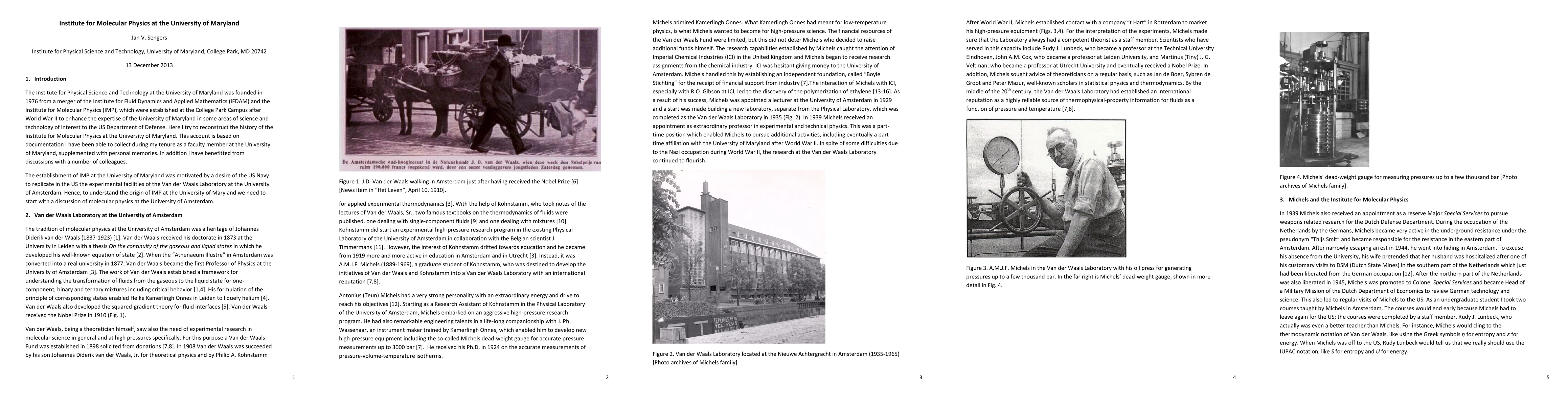 The Institute for Physical Science and Technology at the University of Maryland was founded in 1976 from a merger of the Institute for Fluid Dynamics and Applied Mathematics (IFDAM) and the Institute for Molecular Physics (IMP), which were established at the College Park Campus after World War II to enhance the expertise of the University of Maryland in some areas of science and technology of interest to the US Department of Defense. Here I try to reconstruct the history of the Institute for Molecular Physics at the University of Maryland.