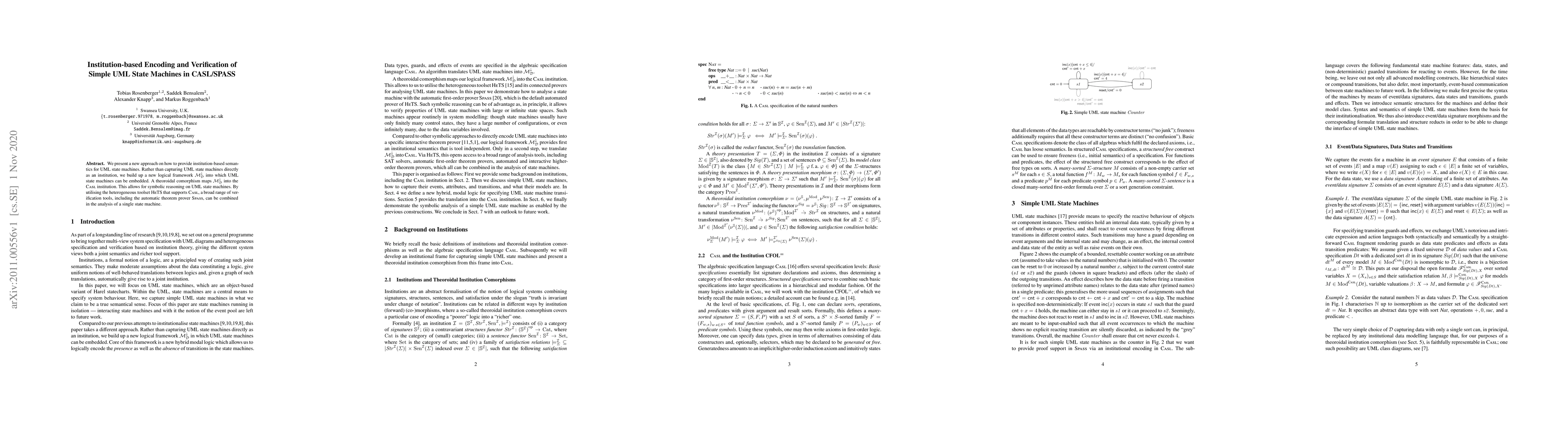 This paper provides the first correct semantical representation of UML state-machines within the logical framework of an institution (previous attempts were flawed). A novel encoding of this representation into first-order logic enables symbolic analyses through a multitude of theorem-provers. UML state-machines are central to model-based systems-engineering. Till now, state-machine analysis has been mostly restricted to model checking, which for state-machines suffers heavily from the state-space explosion problem. Symbolic reasoning, as enabled and demonstrated here, provides a powerful alternative, which can deal with large or even infinite state spaces. Full proofs are given.