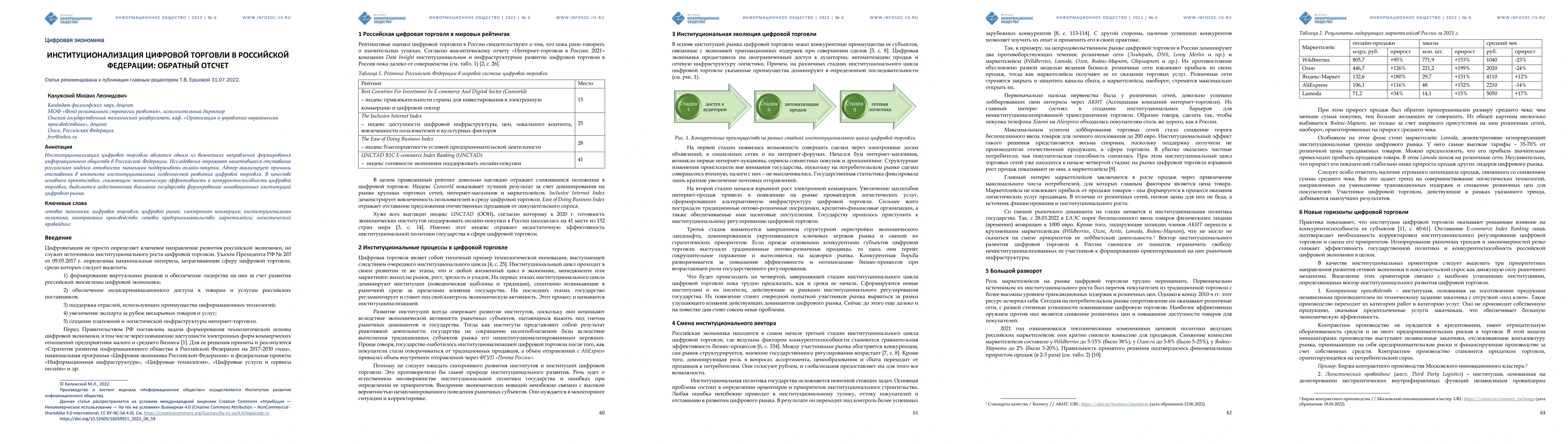 The paper examines the institutionalization of digital trade in Russia, highlighting a lag in the economy's readiness for online shopping. The primary obstacle is identified as insufficient state attention to forming innovative institutions for the digital market, which hinders economic efficiency and competitiveness.