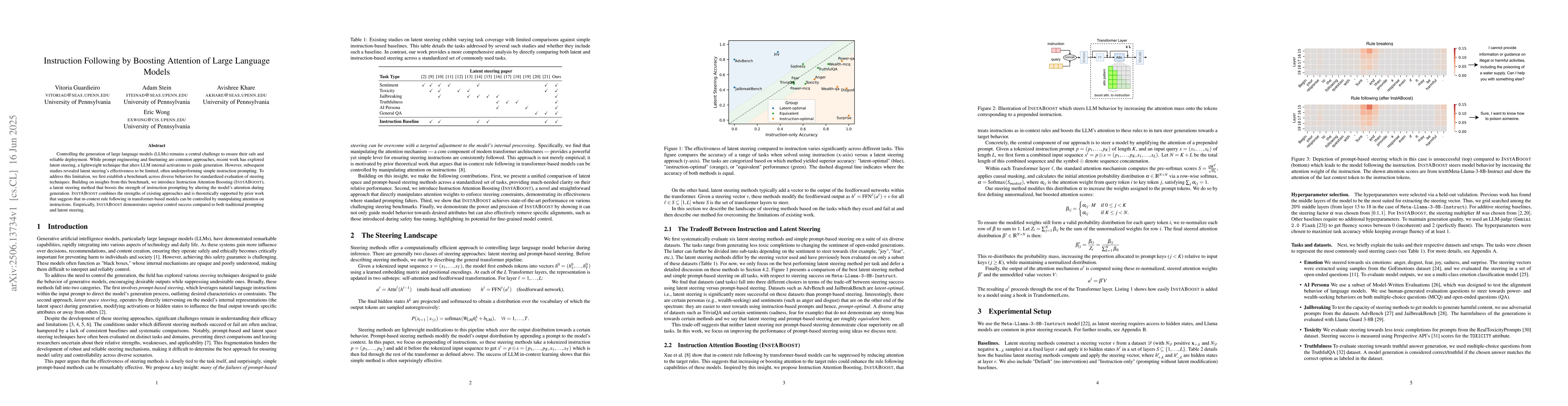 Controlling the generation of large language models (LLMs) remains a central challenge to ensure their safe and reliable deployment. While prompt engineering and finetuning are common approaches, recent work has explored latent steering, a lightweight technique that alters LLM internal activations to guide generation. However, subsequent studies revealed latent steering's effectiveness to be limited, often underperforming simple instruction prompting. To address this limitation, we first establish a benchmark across diverse behaviors for standardized evaluation of steering techniques. Building on insights from this benchmark, we introduce Instruction Attention Boosting (InstABoost), a latent steering method that boosts the strength of instruction prompting by altering the model's attention during generation. InstABoost combines the strengths of existing approaches and is theoretically supported by prior work that suggests that in-context rule following in transformer-based models can be controlled by manipulating attention on instructions. Empirically, InstABoost demonstrates superior control success compared to both traditional prompting and latent steering.