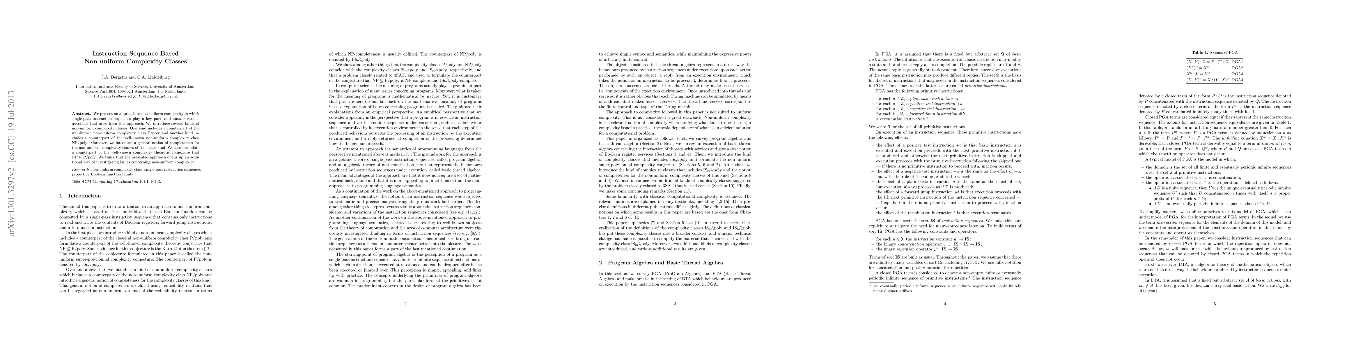 This paper introduces a new framework for non-uniform complexity based on single-pass instruction sequences, defining several complexity classes including counterparts to P/poly and NP/poly. It also proposes a general notion of completeness for these classes and formulates a conjecture analogous to the NP ⊆ P/poly question, suggesting a novel avenue for exploring non-uniform complexity.