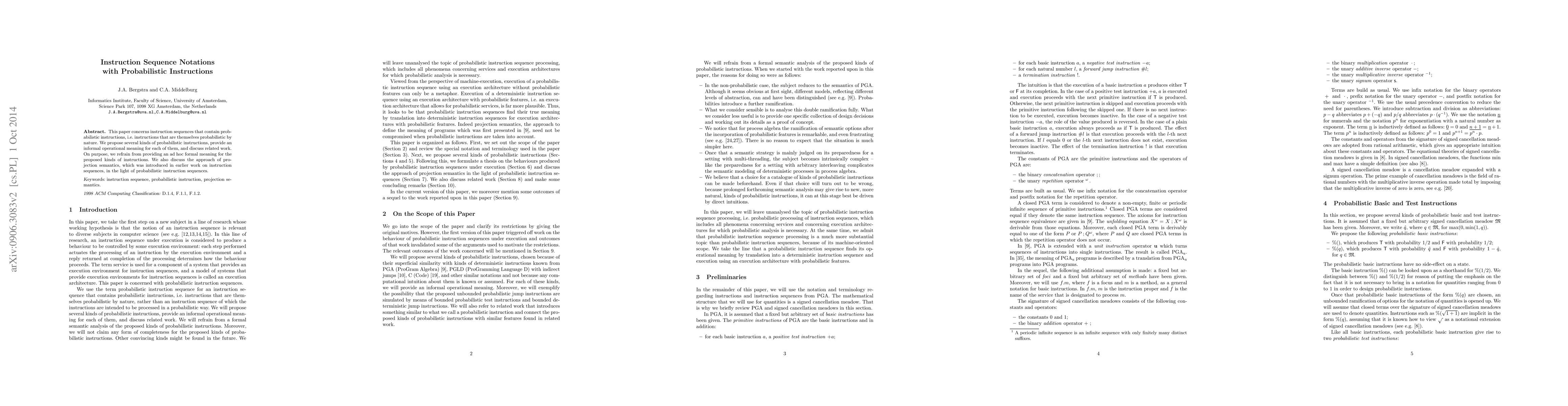 This paper concerns instruction sequences that contain probabilistic instructions, i.e. instructions that are themselves probabilistic by nature. We propose several kinds of probabilistic instructions, provide an informal operational meaning for each of them, and discuss related work. On purpose, we refrain from providing an ad hoc formal meaning for the proposed kinds of instructions. We also discuss the approach of projection semantics, which was introduced in earlier work on instruction sequences, in the light of probabilistic instruction sequences.