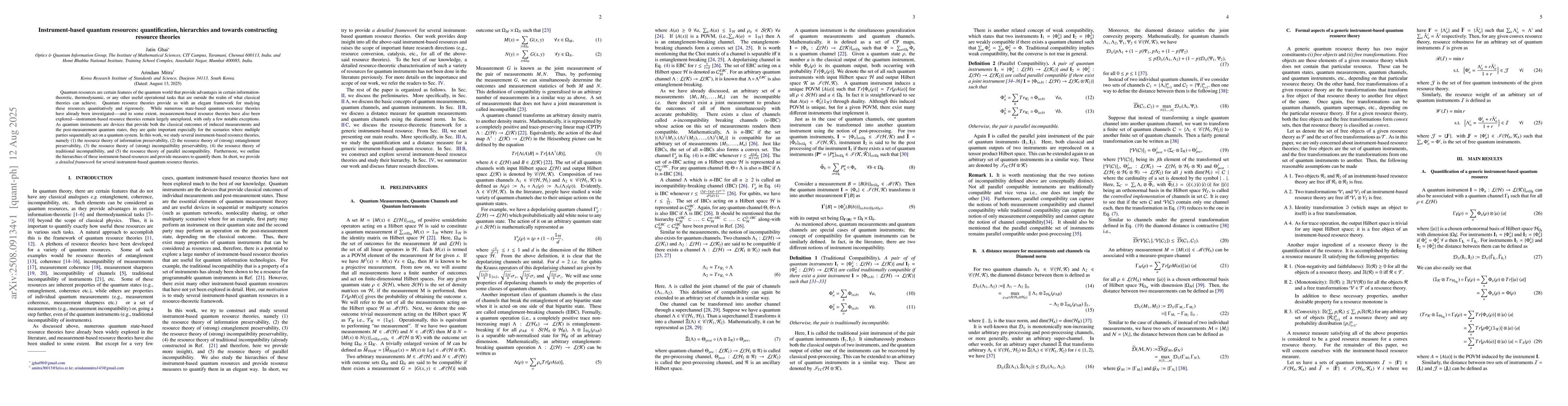Quantum resources are certain features of the quantum world that provide advantages in certain information-theoretic, thermodynamic, or any other useful operational tasks that are outside the realm of what classical theories can achieve. Quantum resource theories provide us with an elegant framework for studying these resources quantitatively and rigorously. While numerous state-based quantum resource theories have already been investigated, and to some extent, measurement-based resource theories have also been explored, instrument-based resource theories remain largely unexplored, with only a few notable exceptions. As quantum instruments are devices that provide both the classical outcomes of induced measurements and the post-measurement quantum states, they are quite important, especially for scenarios where multiple parties sequentially act on a quantum system. In this work, we study several instrument-based resource theories, namely (1) the resource theory of information preservability, (2) the resource theory of (strong) entanglement preservability, (3) the resource theory of (strong) incompatibility preservability, (4) the resource theory of traditional incompatibility, and (5) the resource theory of parallel incompatibility. Furthermore, we outline the hierarchies of these instrument-based resources and provide measures to quantify them. In short, we provide a detailed framework for several instrument-based quantum resource theories.
