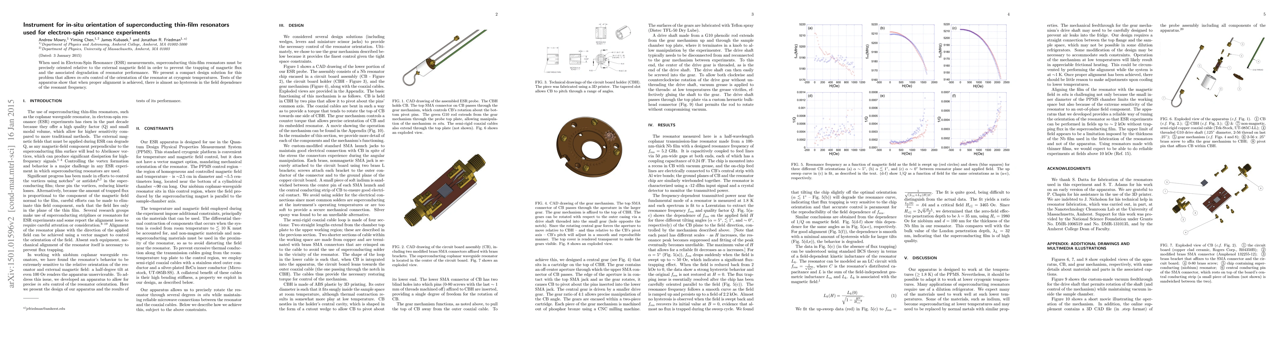 This paper introduces a compact device designed for the in-situ orientation of superconducting thin-film resonators during Electron-Spin Resonance (ESR) experiments, ensuring precise alignment to prevent magnetic flux trapping and maintain resonator performance. The apparatus demonstrates minimal hysteresis in resonant frequency when the resonator is correctly aligned.
