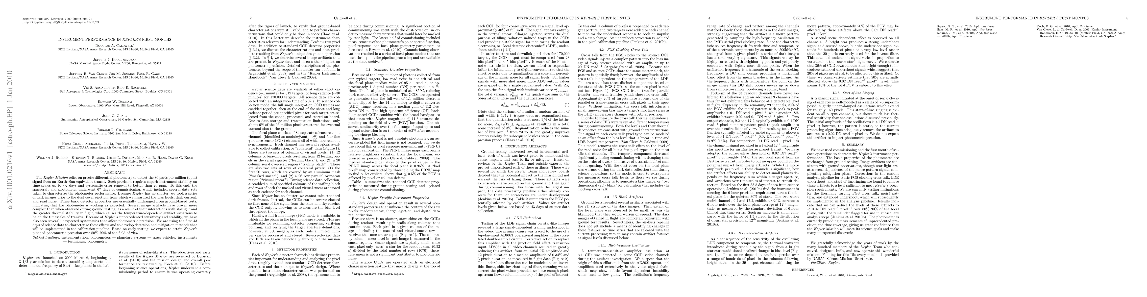 The Kepler Mission relies on precise differential photometry to detect the 80 parts per million (ppm) signal from an Earth-Sun equivalent transit. Such precision requires superb instrument stability on time scales up to ~2 days and systematic error removal to better than 20 ppm. To this end, the spacecraft and photometer underwent 67 days of commissioning, which included several data sets taken to characterize the photometer performance. Because Kepler has no shutter, we took a series of dark images prior to the dust cover ejection, from which we measured the bias levels, dark current, and read noise. These basic detector properties are essentially unchanged from ground-based tests, indicating that the photometer is working as expected. Several image artifacts have proven more complex than when observed during ground testing, as a result of their interactions with starlight and the greater thermal stability in flight, which causes the temperature-dependent artifact variations to be on the timescales of transits. Because of Kepler's unprecedented sensitivity and stability, we have also seen several unexpected systematics that affect photometric precision. We are using the first 43 days of science data to characterize these effects and to develop detection and mitigation methods that will be implemented in the calibration pipeline. Based on early testing, we expect to attain Kepler's planned photometric precision over 80%-90% of the field of view.