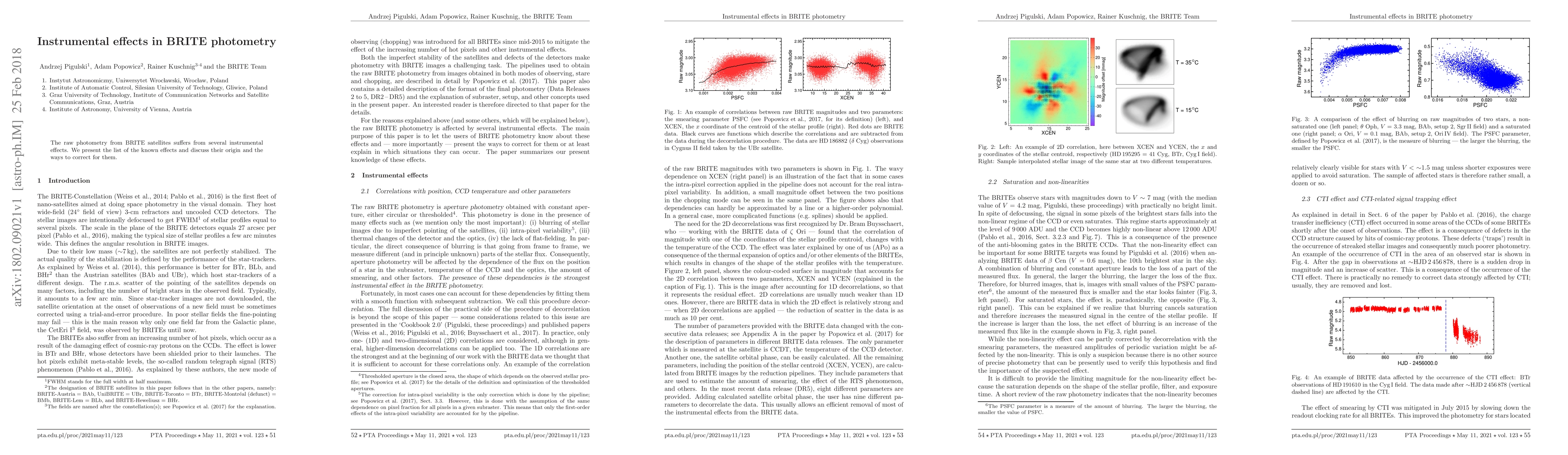 The raw photometry from BRITE satellites suffers from several instrumental effects. We present the list of the known effects and discuss their origin and the ways to correct for them.