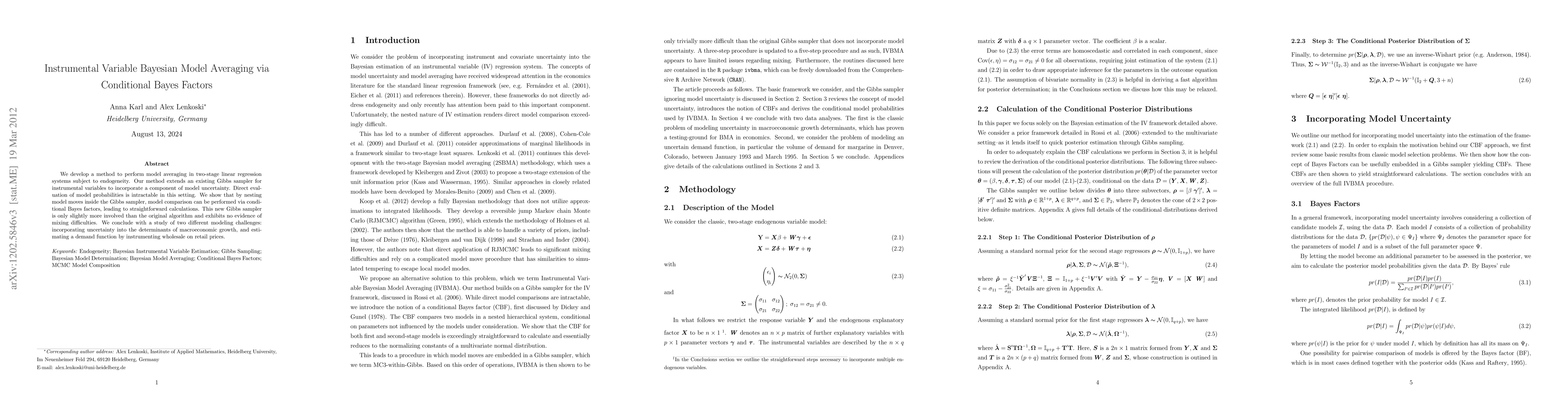 The research develops a Gibbs sampler to perform model averaging in two-stage linear regression systems subject to endogeneity, extending an existing algorithm to incorporate model uncertainty via conditional Bayes factors.