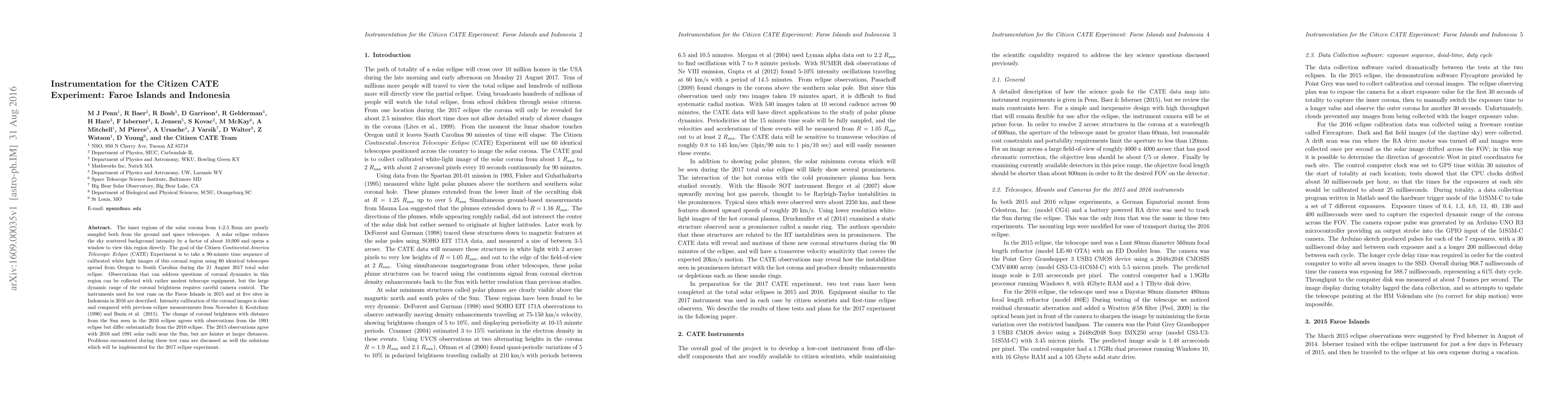 The inner regions of the solar corona from 1-2.5 Rsun are poorly sampled both from the ground and space telescopes. A solar eclipse reduces the sky scattered background intensity by a factor of about 10,000 and opens a window to view this region directly. The goal of the Citizen {\it Continental-America Telescopic Eclipse} (CATE) Experiment is to take a 90-minute time sequence of calibrated white light images of this coronal region using 60 identical telescopes spread from Oregon to South Carolina during the 21 August 2017 total solar eclipse. Observations that can address questions of coronal dynamics in this region can be collected with rather modest telescope equipment, but the large dynamic range of the coronal brightness requires careful camera control. The instruments used for test runs on the Faroe Islands in 2015 and at five sites in Indonesia in 2016 are described. Intensity calibration of the coronal images is done and compared with previous eclipse measurements from November \& Koutchmy (1996) and Bazin et al. (2015). The change of coronal brightness with distance from the Sun seen in the 2016 eclipse agrees with observations from the 1991 eclipse but differ substantially from the 2010 eclipse. The 2015 observations agree with 2016 and 1991 solar radii near the Sun, but are fainter at larger distances. Problems encountered during these test runs are discussed as well the solutions which will be implemented for the 2017 eclipse experiment.