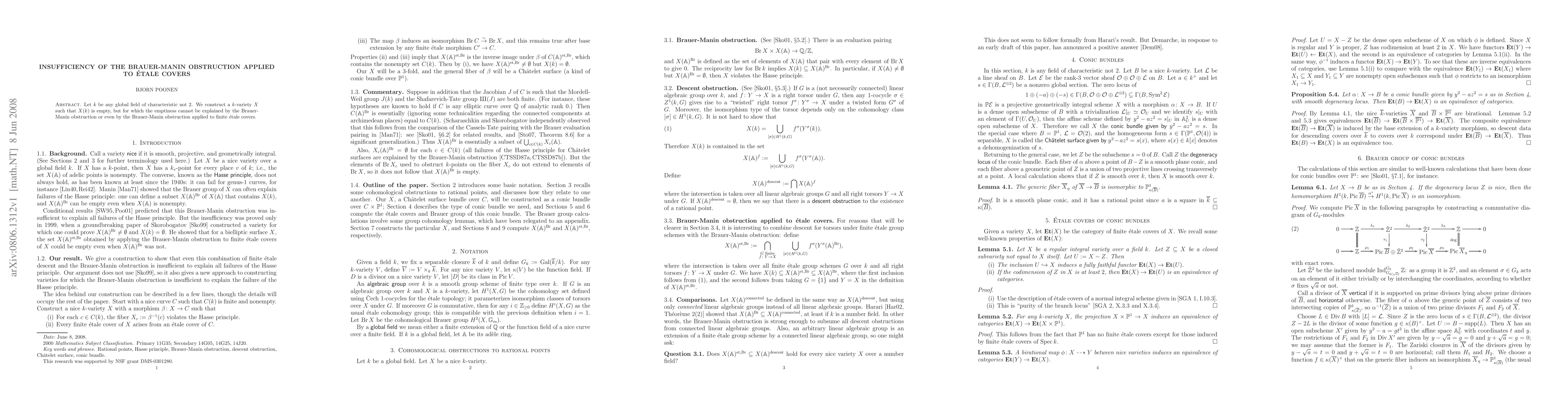 Summary: The paper constructs a k-variety X with no rational points, where the absence cannot be attributed to the Brauer-Manin obstruction or its application to finite étale covers, highlighting limitations in these approaches.