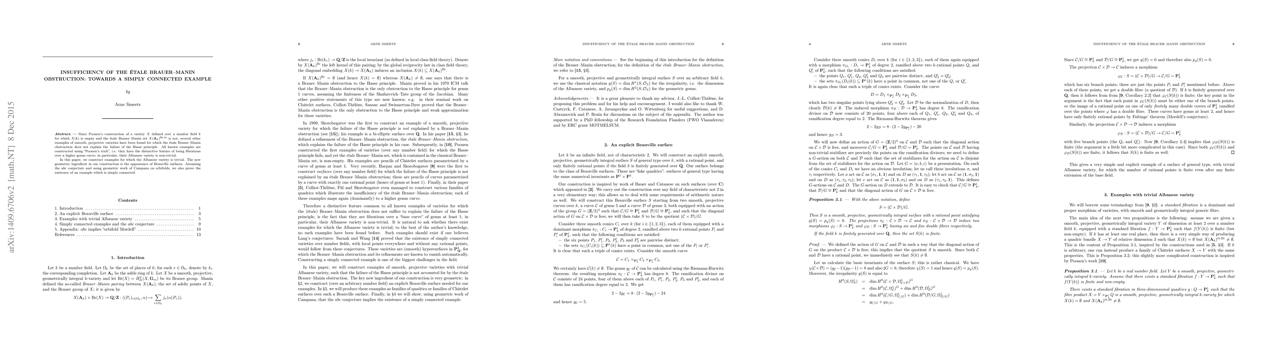 Since Poonen's construction of a variety $X$ defined over a number field $k$ for which $X(k)$ is empty and the \'etale Brauer--Manin set $X(\mathbf{A}_k)^\text{Br,et}$ is not, several other examples of smooth, projective varieties have been found for which the \'etale Brauer--Manin obstruction does not explain the failure of the Hasse principle. All known examples are constructed using "Poonen's trick", i.e. they have the distinctive feature of being fibrations over a higher genus curve; in particular, their Albanese variety is non-trivial. In this paper, we construct examples for which the Albanese variety is trivial. The new geometric ingredient in our construction is the appearance of Beauville surfaces. Assuming the $abc$ conjecture and using geometric work of Campana on orbifolds, we also prove the existence of an example which is simply connected.