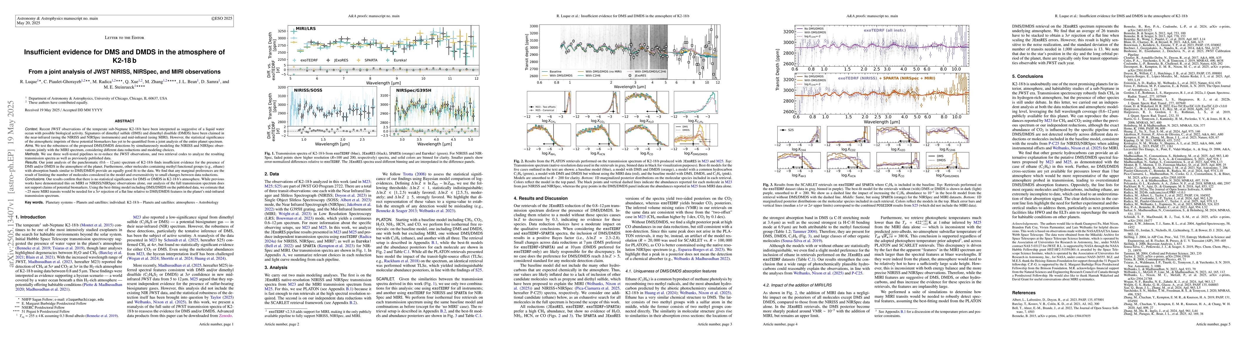 The study re-reduced JWST observations of K2-18 b using three well-tested pipelines and analyzed transmission spectra with two retrieval codes, simultaneously modeling NIRISS, NIRSpec, and MIRI data to test DMS/DMDS detection robustness.