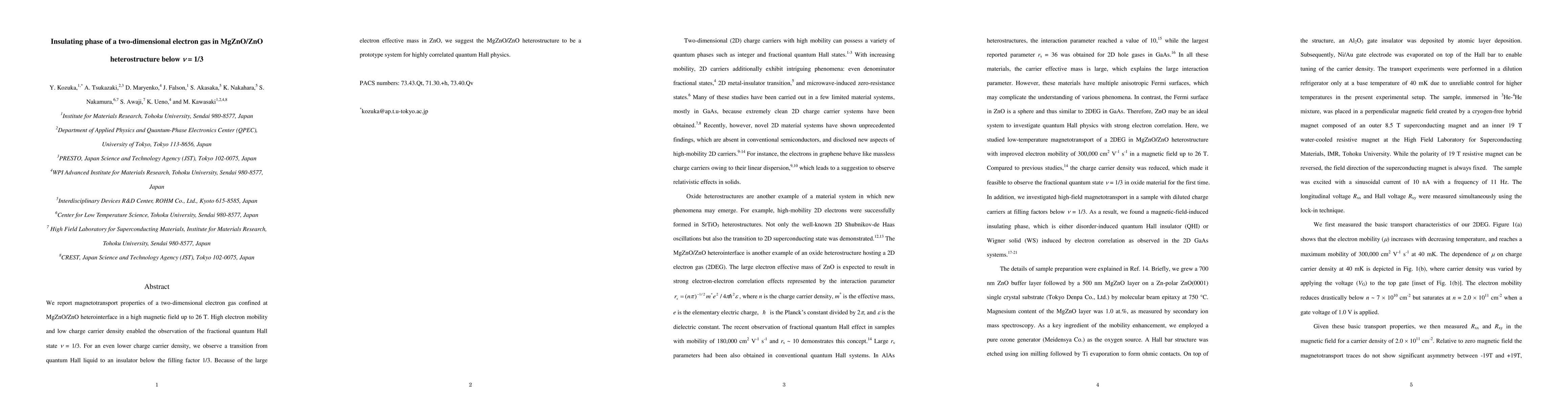 We report magnetotransport properties of a two-dimensional electron gas confined at MgZnO/ZnO heterointerface in a high magnetic field up to 26 T. High electron mobility and low charge carrier density enabled the observation of the fractional quantum Hall state nu = 1/3. For an even lower charge carrier density, we observe a transition from quantum Hall liquid to an insulator below the filling factor 1/3. Because of the large electron effective mass in ZnO, we suggest the MgZnO/ZnO heterostructure to be a prototype system for highly correlated quantum Hall physics.