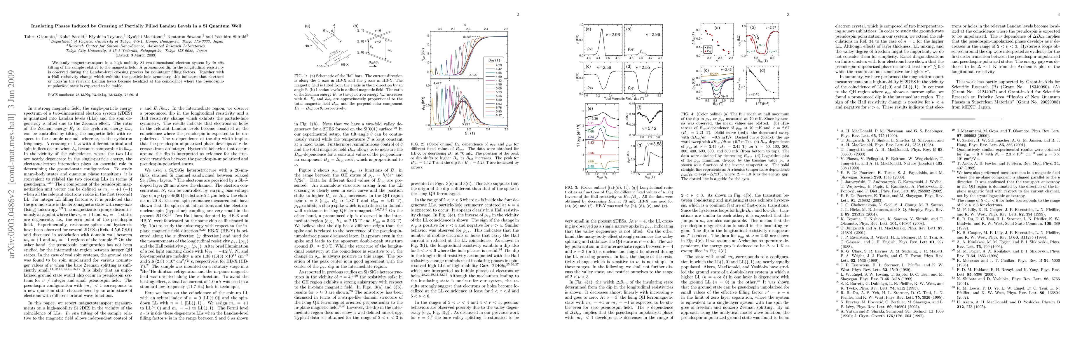 We study magnetotransport in a high mobility Si two-dimensional electron system by in situ tilting of the sample relative to the magnetic field. A pronounced dip in the longitudinal resistivity is observed during the Landau level crossing process for noninteger filling factors. Together with a Hall resistivity change which exhibits the particle-hole symmetry, this indicates that electrons or holes in the relevant Landau levels become localized at the coincidence where the pseudospin-unpolarized state is expected to be stable.