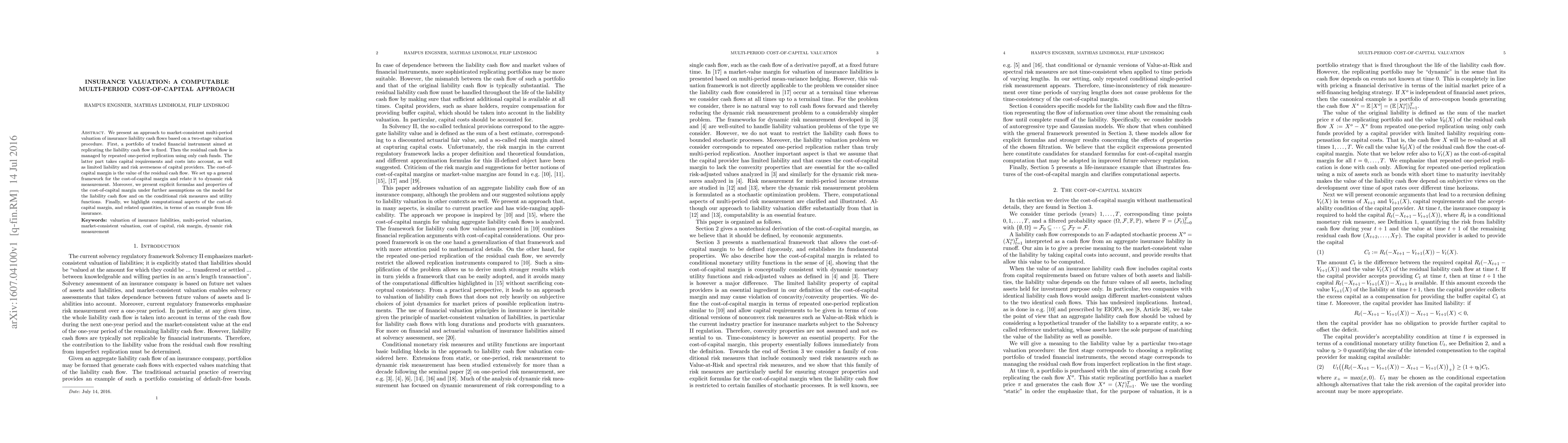 This paper proposes a two-stage method for valuing insurance liabilities over multiple periods, using a cost-of-capital approach that incorporates capital requirements and risk aversion. It provides a framework for dynamic risk measurement and computational examples for life insurance.