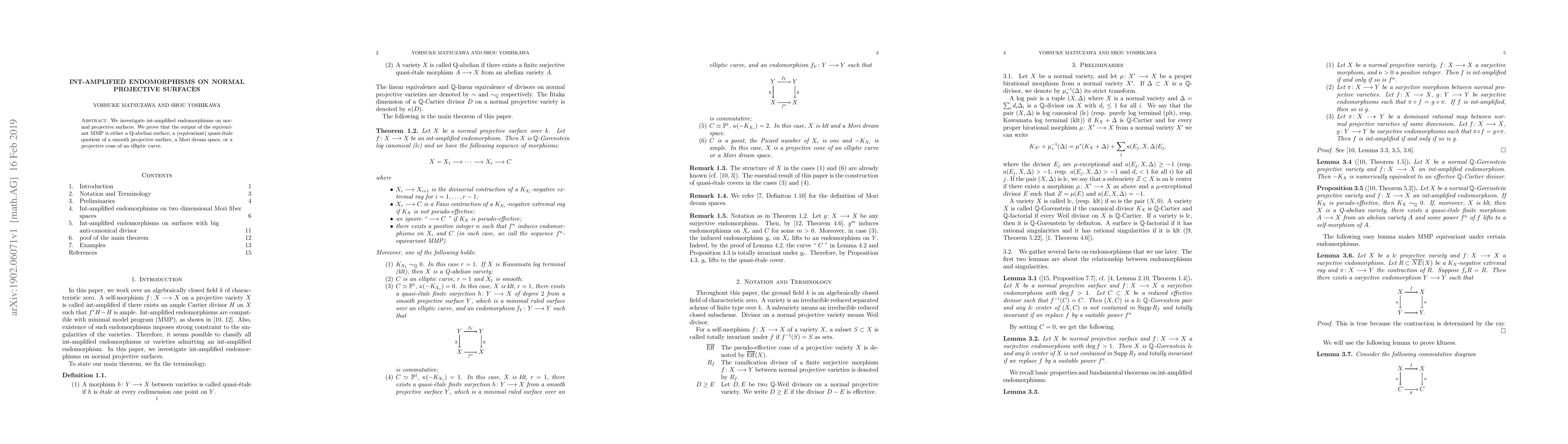 This paper studies int-amplified endomorphisms on normal projective surfaces, proving that their equivariant Minimal Model Program (MMP) results in either a Q-abelian surface, a quasi-étale quotient of a smooth projective surface, a Mori dream space, or a projective cone over an elliptic curve.