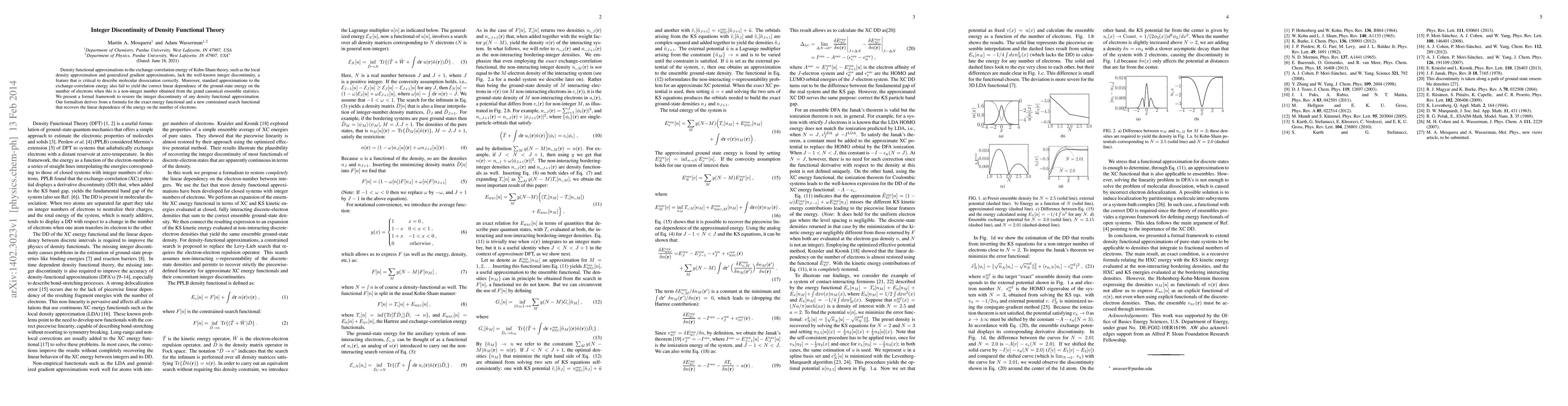 This paper proposes a framework to restore the integer discontinuity in density functional approximations, addressing their failure to correctly describe molecular dissociation and the linear dependence of ground-state energy on non-integer electron numbers. The proposed method leverages a formula for the exact energy functional and a constrained search functional.