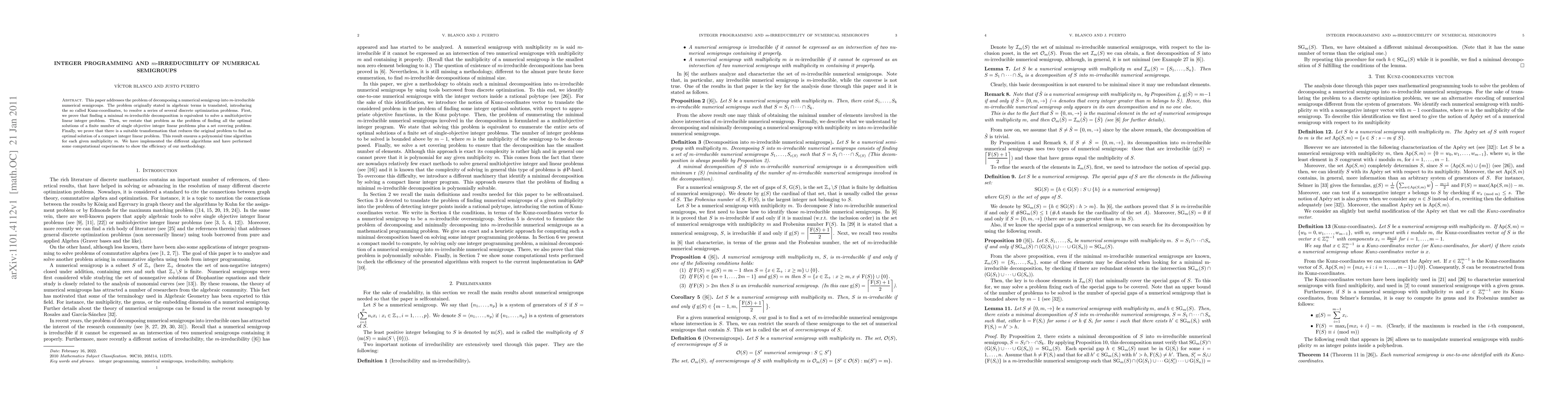 Researchers develop a method to decompose numerical semigroups into m-irreducible parts using integer programming, enabling efficient computation of optimal solutions in polynomial time.