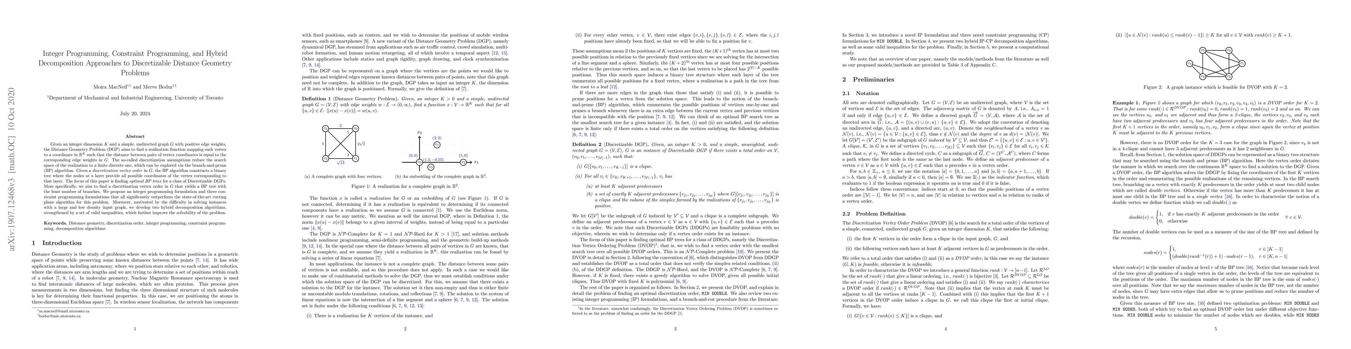 Researchers developed hybrid decomposition algorithms to solve Distance Geometry Problems with discretization assumptions, improving upon existing cutting plane algorithms and offering new approaches for solving these problems.