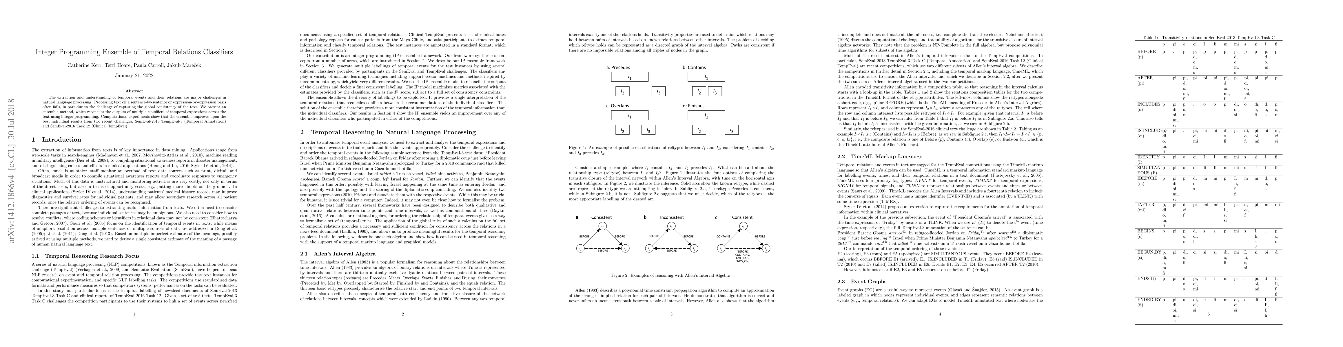 This research paper proposes an ensemble method using integer programming to improve temporal event extraction in natural language processing, outperforming individual classifiers in two recent challenges.
