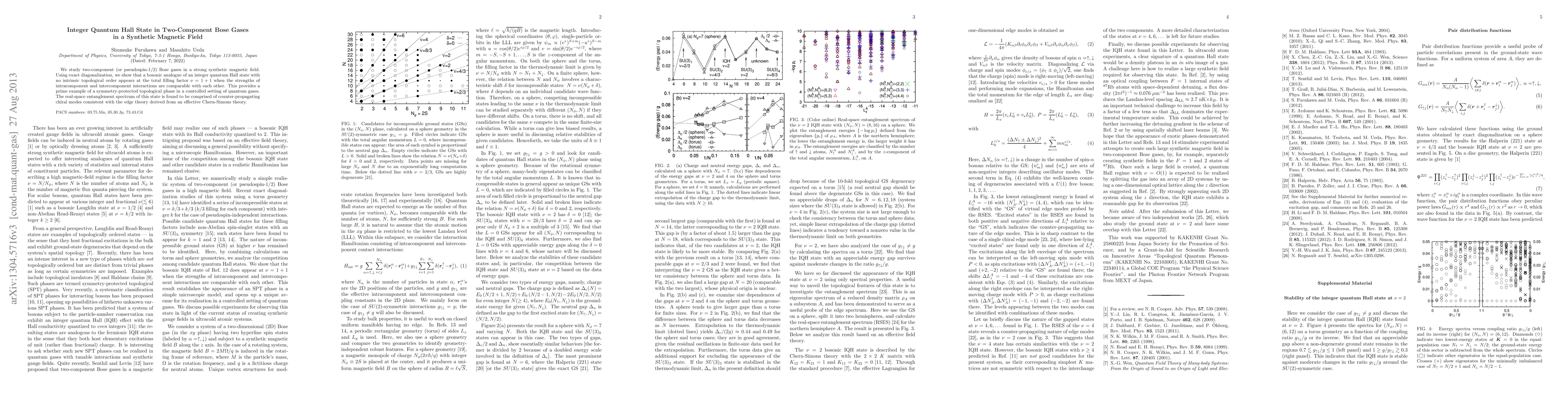 We study two-component (or pseudospin-1/2) Bose gases in a strong synthetic magnetic field. Using exact diagonalization, we show that a bosonic analogue of an integer quantum Hall state with no intrinsic topological order appears at the total filling factor \nu=1+1 when the strengths of intracomponent and intercomponent interactions are comparable with each other. This provides a prime example of a symmetry-protected topological phase in a controlled setting of quantum gases. The real-space entanglement spectrum of this state is found to be comprised of counter-propagating chiral modes consistent with the edge theory derived from the effective Chern-Simons theory.