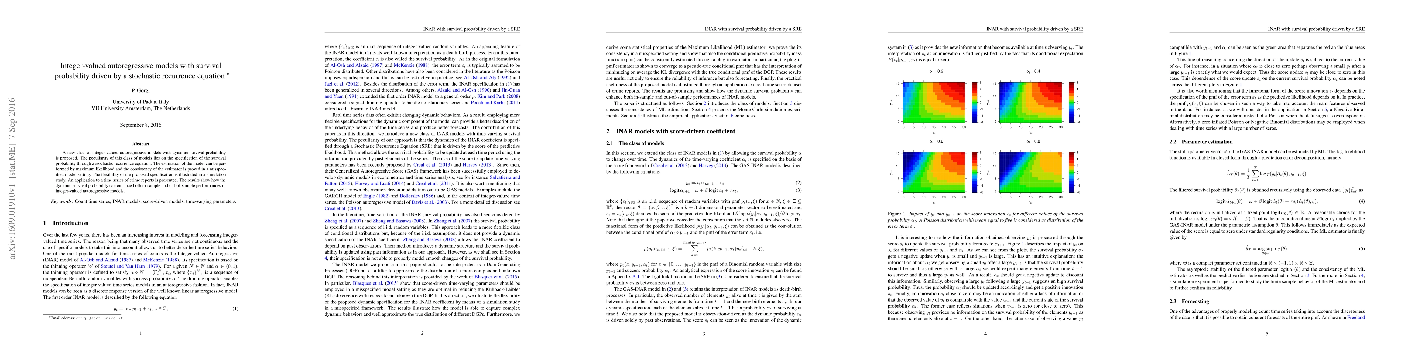 This paper introduces a novel integer-valued autoregressive model where survival probability is driven by a stochastic recurrence equation. The model's estimator is shown to be consistent even in misspecified settings, and its flexibility is demonstrated through simulations and an application to crime report data, highlighting improved performance.