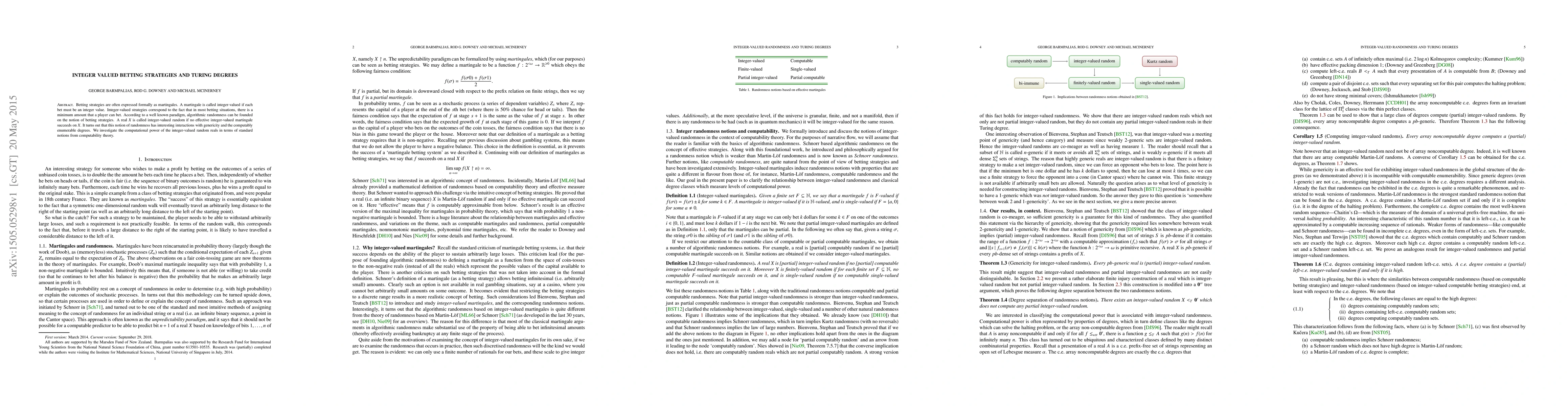 This paper explores integer-valued betting strategies, which require bets to be integer values, and their relation to algorithmic randomness. It examines how these strategies interact with computably enumerable Turing degrees, revealing their computational power within computability theory.