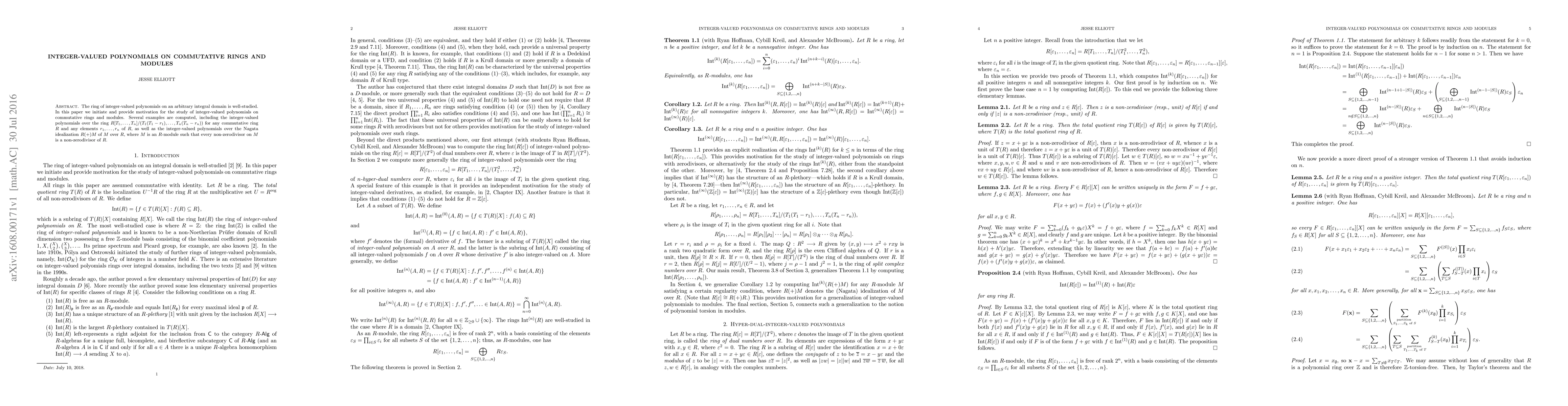 This paper explores integer-valued polynomials on commutative rings and modules, extending the well-studied concept from integral domains. It provides examples, including computations over polynomial rings and the Nagata idealization of modules over rings.