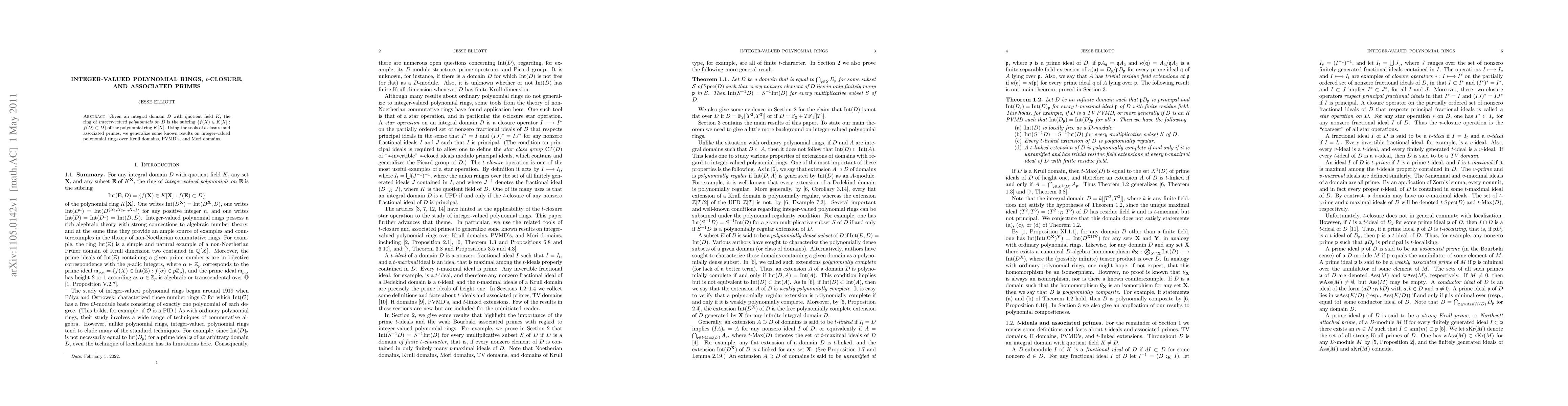 This paper explores the ring of integer-valued polynomials on an integral domain $D$, employing $t$-closure and associated primes to generalize existing results for integer-valued polynomial rings over various types of domains, including Krull domains, PVMD's, and Mori domains.