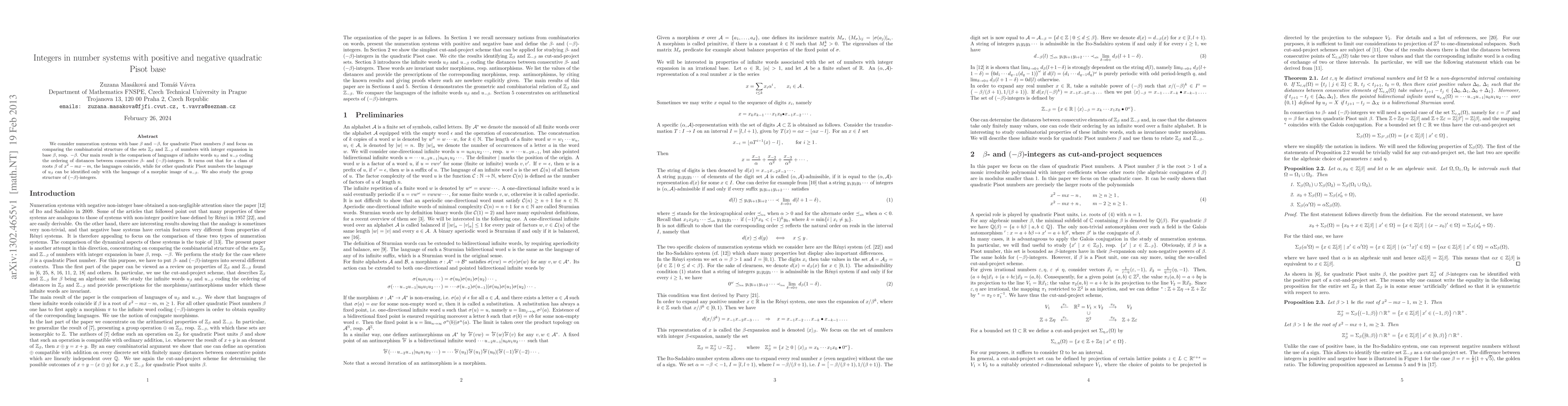 Researchers compared the combinatorial structure of sets of numbers with integer expansions in base θ and -θ for quadratic Pisot numbers θ, finding that their languages coincide under certain conditions but differ otherwise.