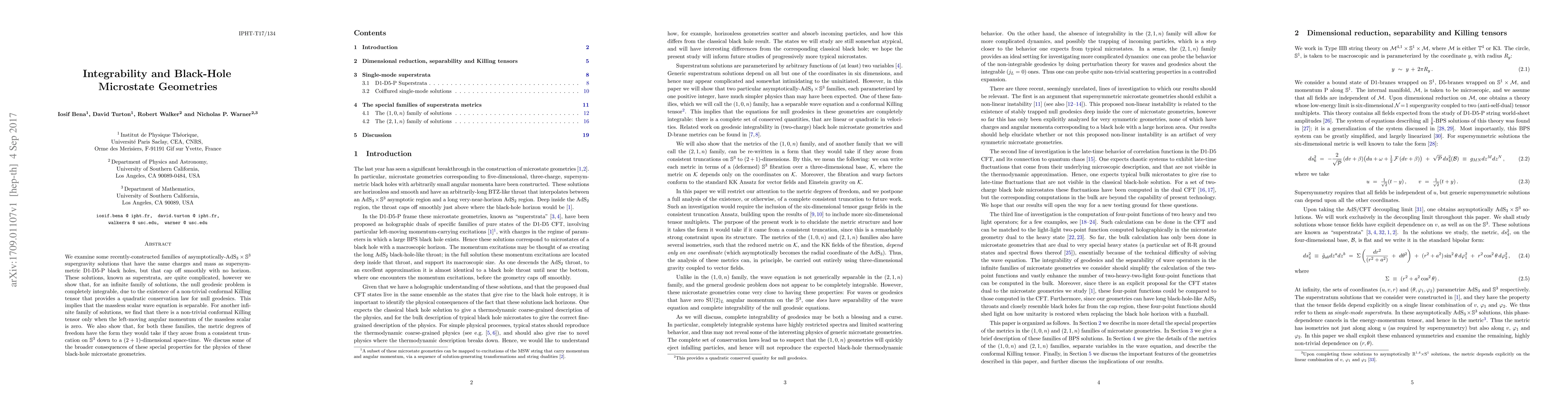 We examine some recently-constructed families of asymptotically-AdS$_3 \times$S$^3$ supergravity solutions that have the same charges and mass as supersymmetric D1-D5-P black holes, but that cap off smoothly with no horizon. These solutions, known as superstrata, are quite complicated, however we show that, for an infinite family of solutions, the null geodesic problem is completely integrable, due to the existence of a non-trivial conformal Killing tensor that provides a quadratic conservation law for null geodesics. This implies that the massless scalar wave equation is separable. For another infinite family of solutions, we find that there is a non-trivial conformal Killing tensor only when the left-moving angular momentum of the massless scalar is zero. We also show that, for both these families, the metric degrees of freedom have the form they would take if they arose from a consistent truncation on S$^3$ down to a (2+1)-dimensional space-time. We discuss some of the broader consequences of these special properties for the physics of these black-hole microstate geometries.