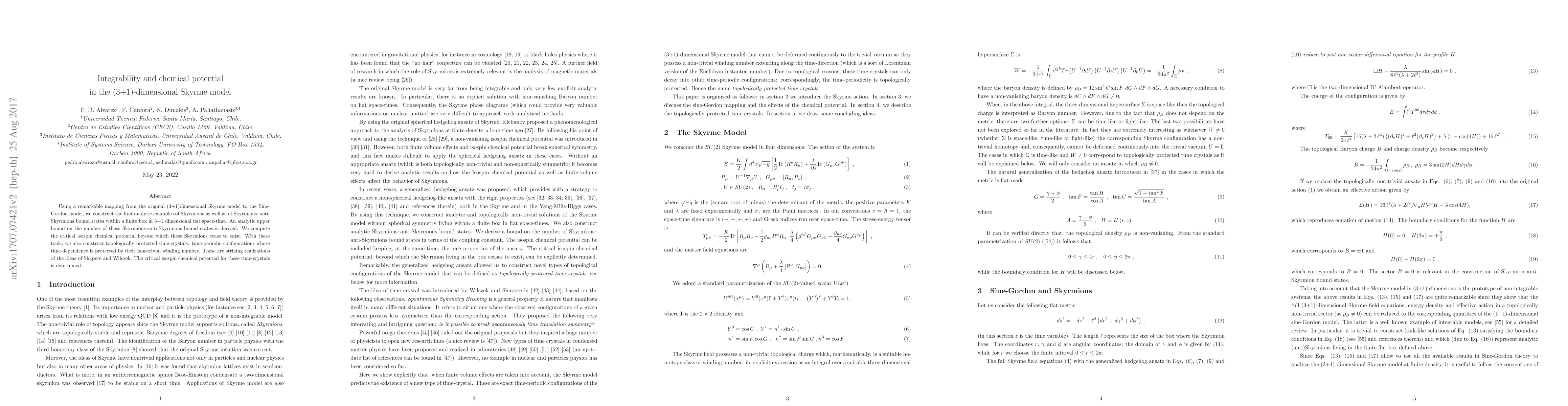 This paper constructs analytic Skyrmions and Skyrmions-anti-Skyrmions bound states in the (3+1)-dimensional Skyrme model via a mapping to the Sine-Gordon model, deriving an upper bound on their number and determining the critical isospin chemical potential for their existence. It also explores topologically protected time-crystals in this model, finding their critical isospin chemical potential.
