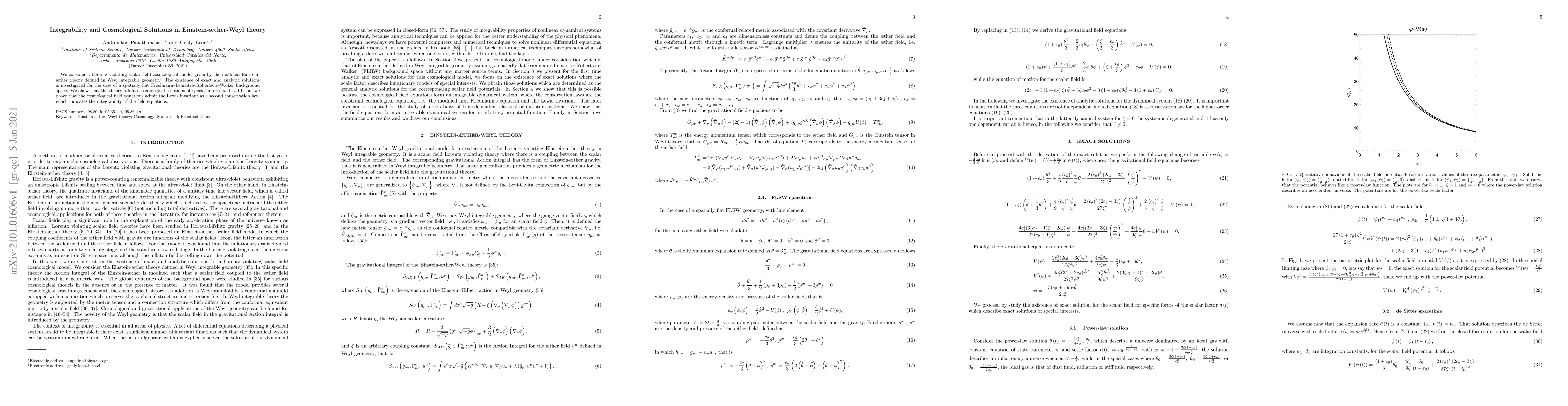 This paper explores a modified Einstein-aether theory within Weyl integrable geometry, revealing exact cosmological solutions for a flat Friedmann-Lemaître-Robertson-Walker universe. It also demonstrates the integrability of the field equations through the Lewis invariant.